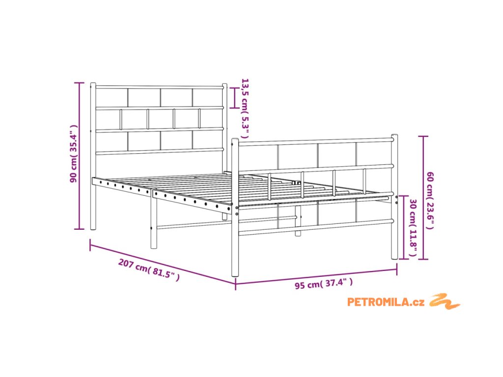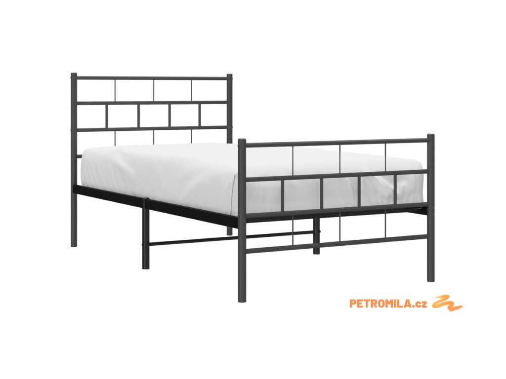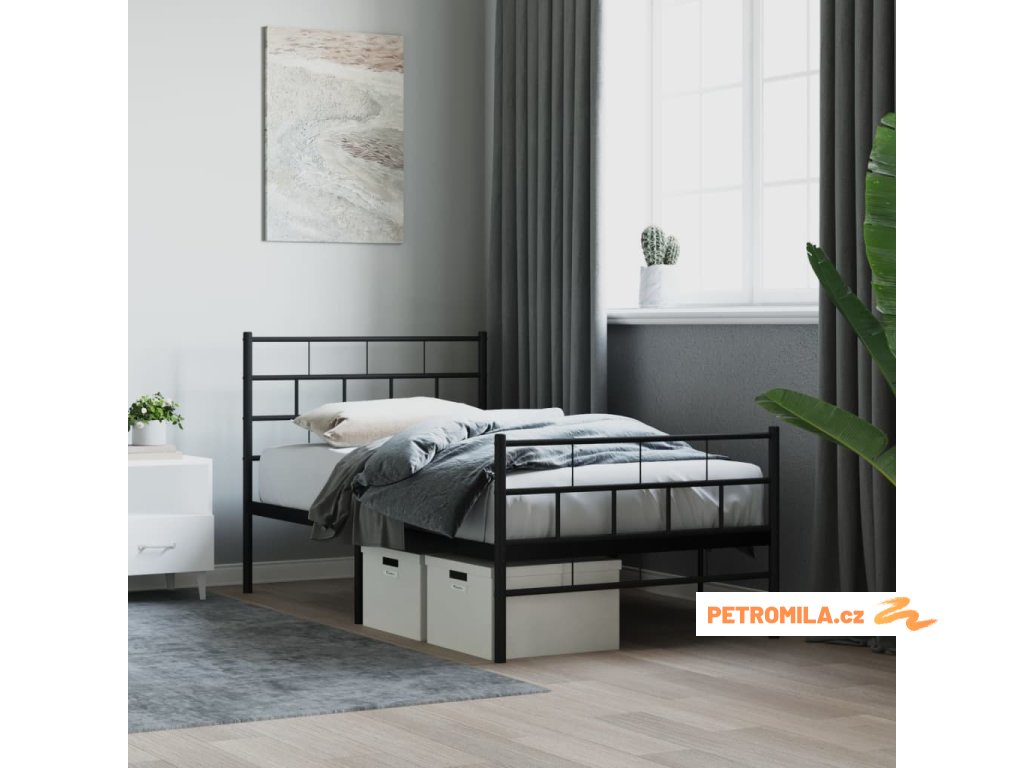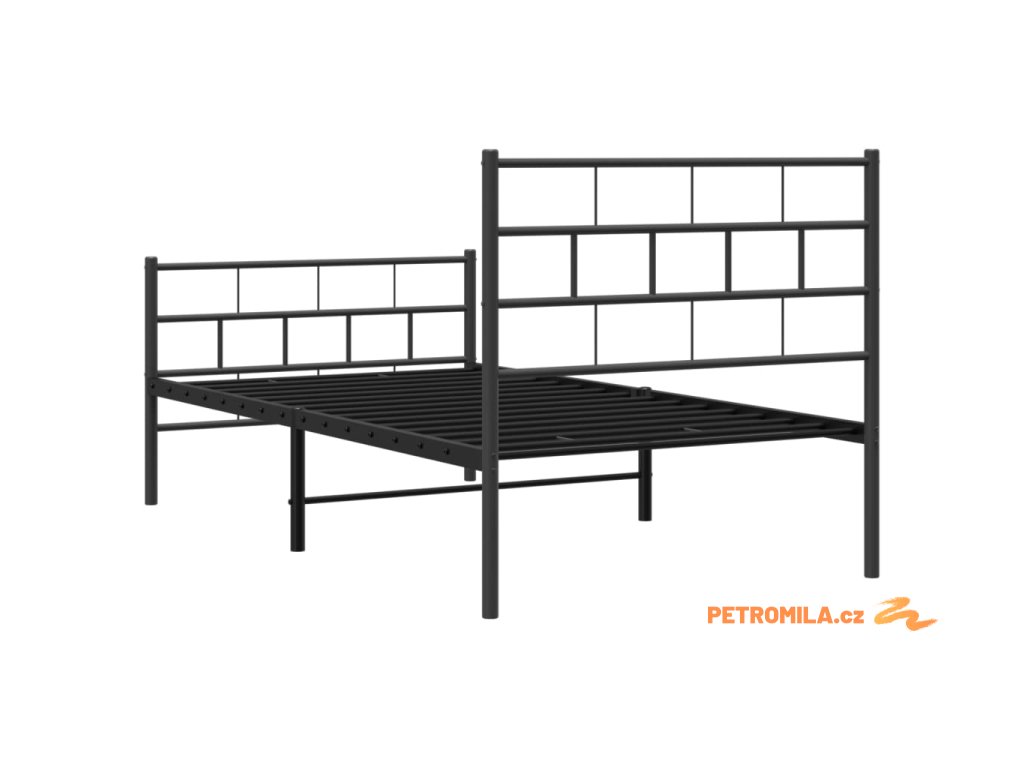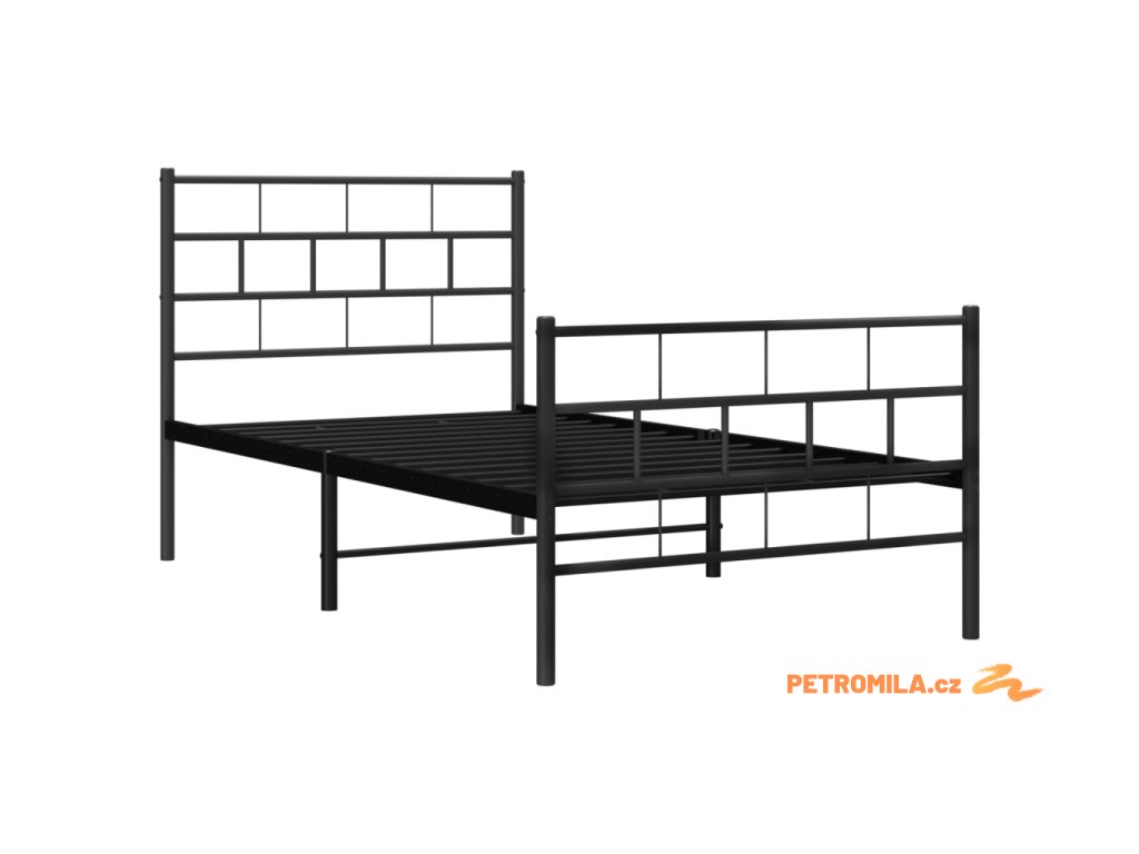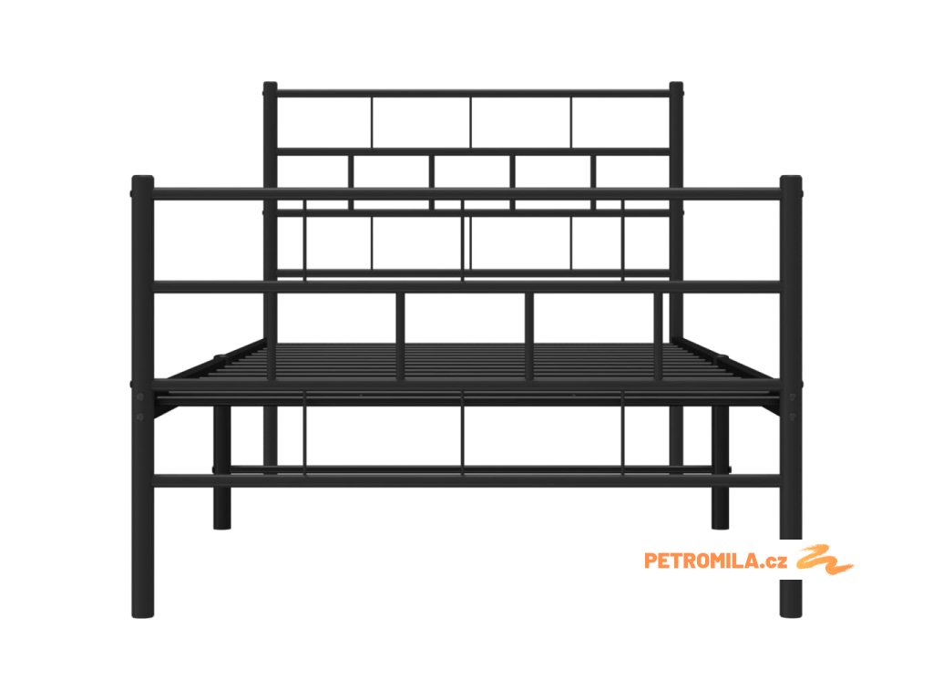 Kovový rám postele s hlavovým a nožním čelem černý 90 x 200 cm