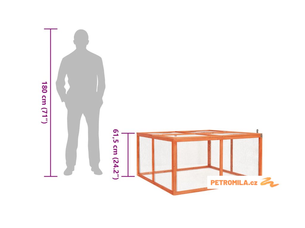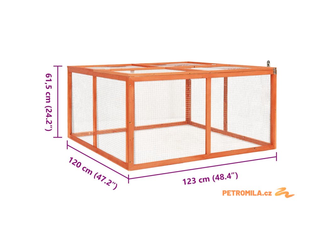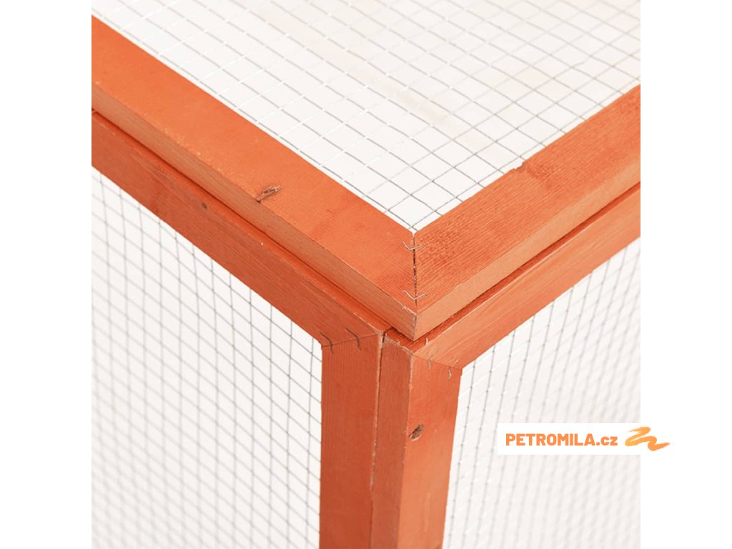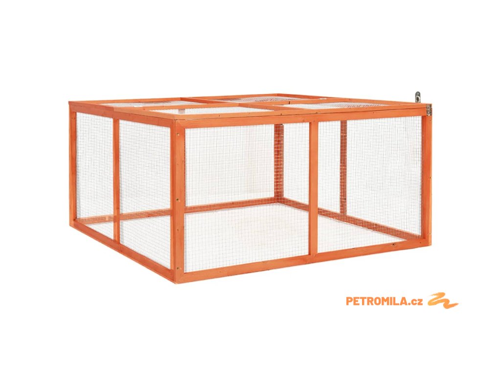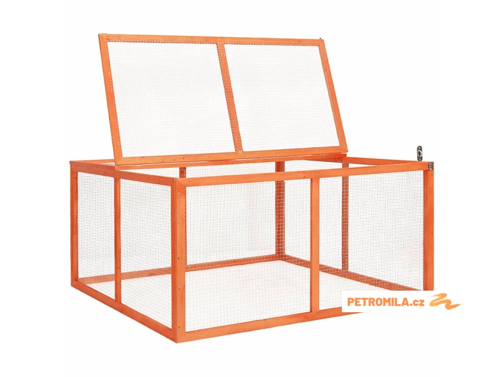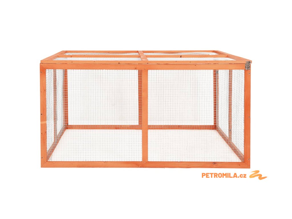 Venkovní výběh pro králíky je zhotoven z masivního rámu z jedlového dřeva a ocelové drátěné konstrukce, kterou je možné snadno a rychle sestavit kdekoli na zahradě. Nabízí dostatek čerstvého vzduchu a slunečního světla, a tím poskytne králíkovi téměř přirozený způsob života. Králíkárna je zastřešena po celé délce, což zabraňuje králíkům ve vyskakování a slouží také jako ochrana před predátory. Je možné ji však z jedné strany otevřít. Tento přístřešek pro drobná zvířata nabízí dostatečnou volnost pohybu a zajisťuje tak jejich spokojenost.