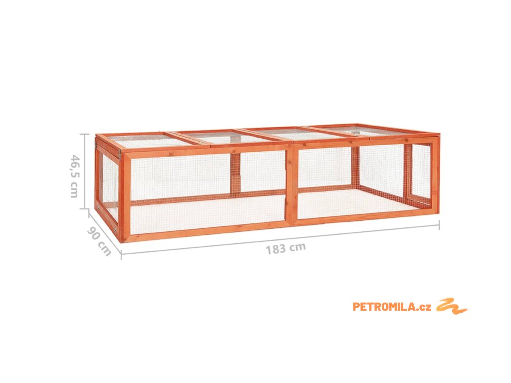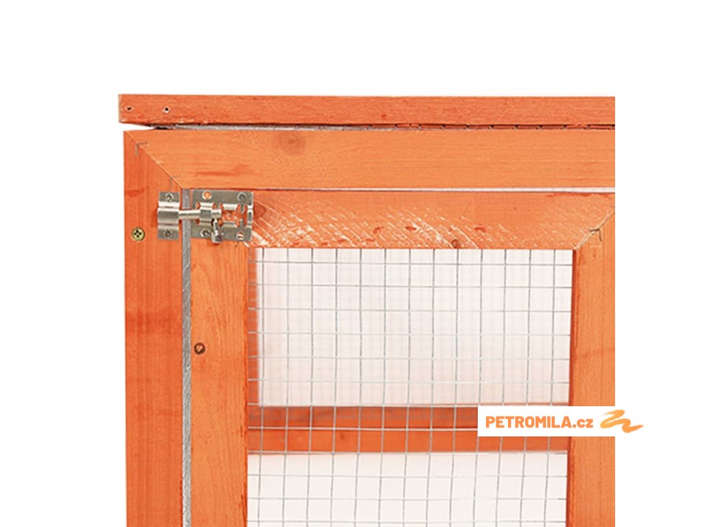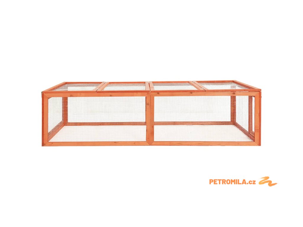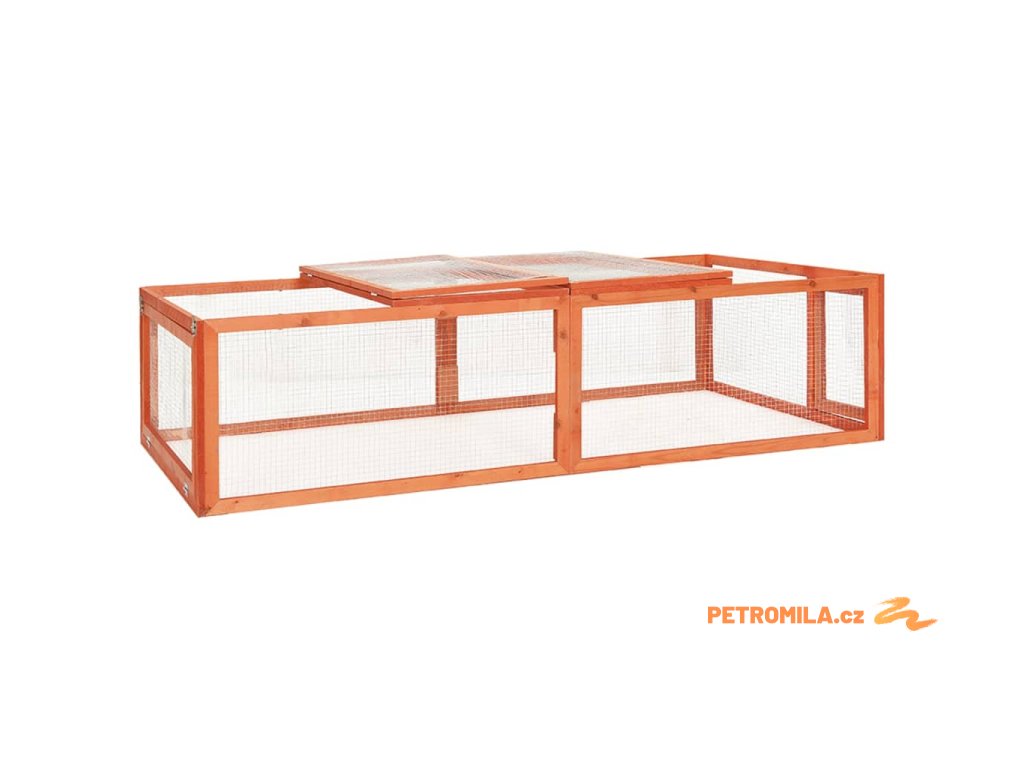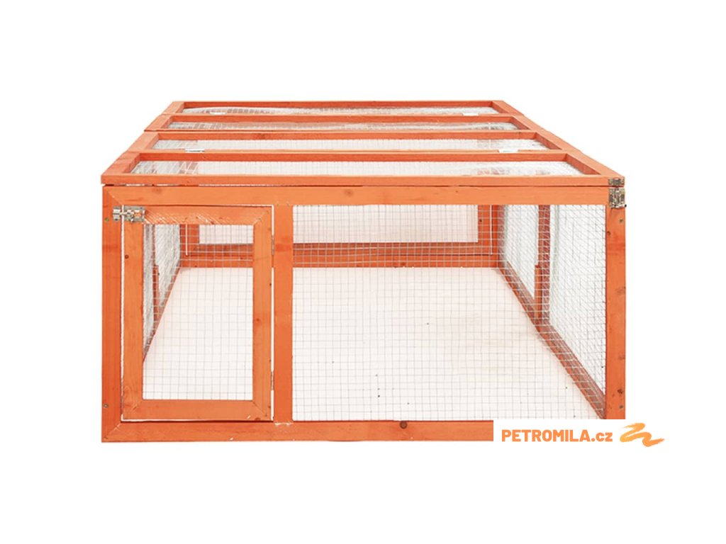 Venkovní výběh pro králíky je zhotoven z masivního rámu z jedlového dřeva a ocelové drátěné konstrukce, kterou je možné snadno a rychle sestavit kdekoli na zahradě. Nabízí dostatek čerstvého vzduchu a slunečního světla, a tím poskytne králíkovi téměř přirozený způsob života. Kryt výběhu se skládá ze čtyř částí, přičemž levá a pravá část se dá otevřít, abyste mohli bez problémů sáhnout dovnitř. Kryt také zabraňuje králíkům ve vyskakování a slouží jako ochrana před predátory. Tento přístřešek pro drobná zvířata nabízí dostatečnou volnost pohybu a zajisťuje tak jejich spokojenost.