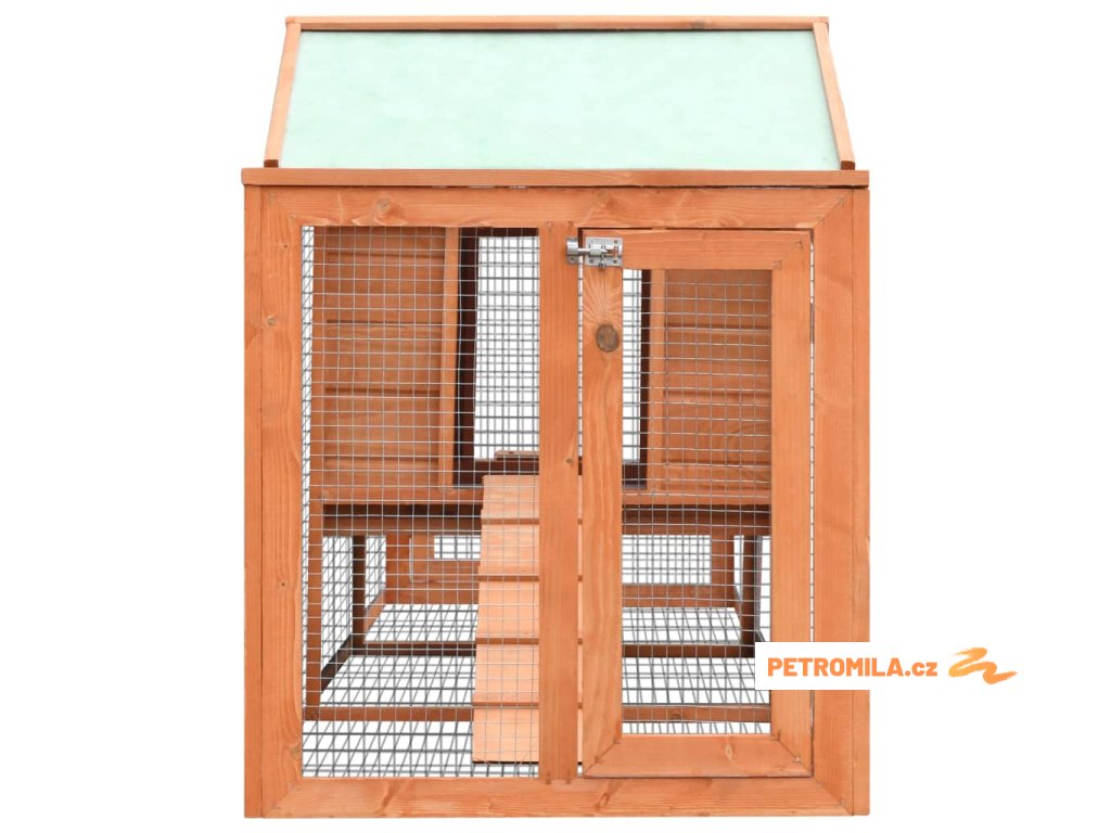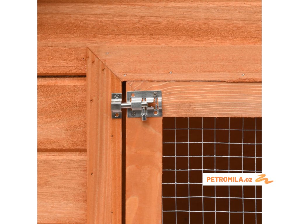 Králíkárna poskytne vašim zvířátkům spoustu místa k pohybu, zatímco husté pletivo z železných drátů zabrání neplechám a nečekaným nehodám. Mřížka vám navíc umožní mazlíčky neustále sledovat a zajistí volné proudění čerstvého vzduchu uvnitř klece. Králíkárnu tvoří vysoce kvalitní dřevěný rám, je proto pevná, bezpečná a vydrží dlouhá léta používání. Zelená střecha chrání obyvatele před deštěm. V útulném domečku se vaši králíci krásně vyspí. Ze spodního do horního patra vede rampa, po níž mohou zvířata snadno vyšplhat nahoru. Výsuvné dno klece usnadňuje její čištění. Dvířka lze jednoduše zavřít a zajistit zasouvacími západkami.