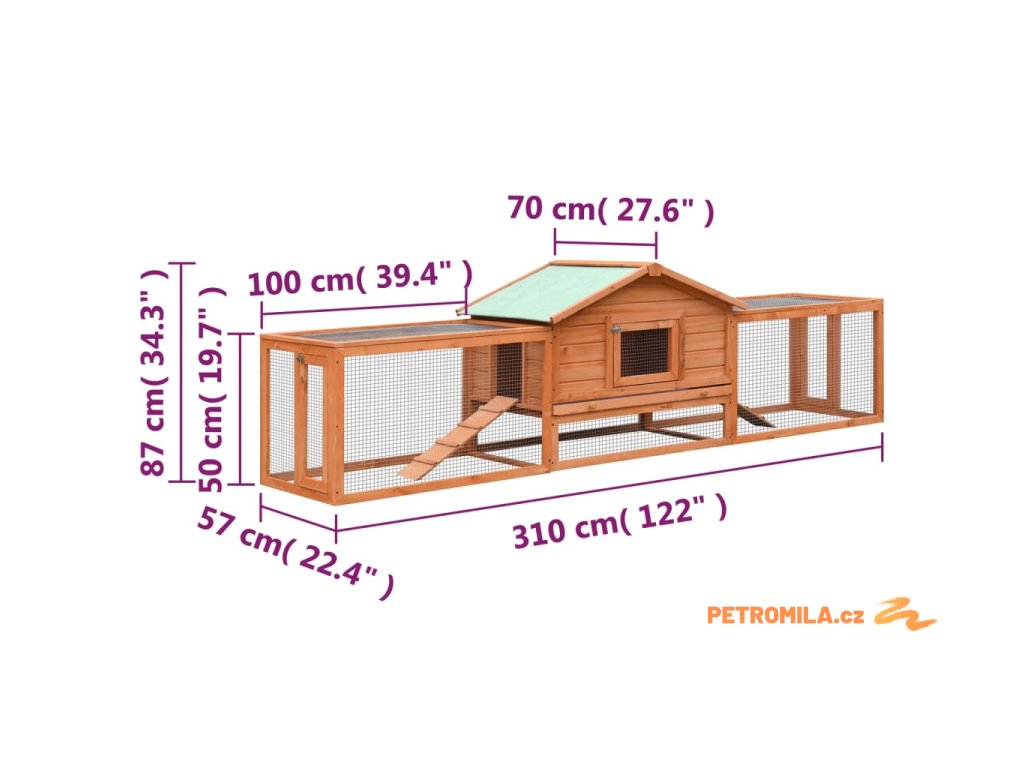 Králíkárna 310x70x87 cm masivní borové a jedlové dřevo