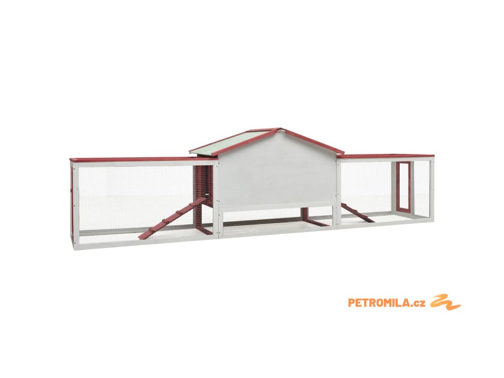 Králíkárna červená 310x70x87 cm masivní borové a jedlové dřevo