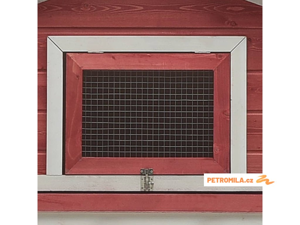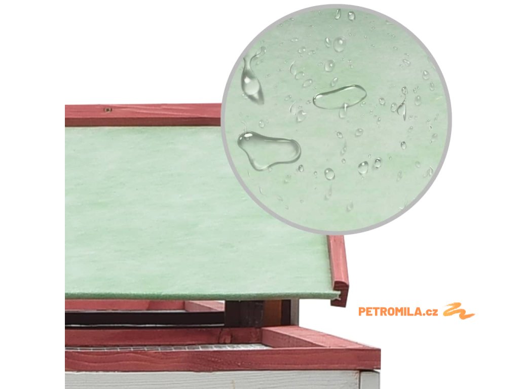 Králíkárna poskytne vašim zvířátkům spoustu místa k pohybu, zatímco husté pletivo z železných drátů zabrání neplechám a nečekaným nehodám. Mřížka vám navíc umožní mazlíčky neustále sledovat a zajistí volné proudění čerstvého vzduchu uvnitř klece. Králíkárnu tvoří vysoce kvalitní dřevěný rám, je proto pevná, bezpečná a vydrží dlouhá léta používání. Zelená střecha chrání obyvatele před deštěm. V útulném domečku se vaši králíci krásně vyspí. Ze spodního do horního patra vede rampa, po níž mohou zvířata snadno vyšplhat nahoru. Výsuvné dno klece usnadňuje její čištění. Dvířka lze jednoduše zavřít a zajistit zasouvacími západkami.