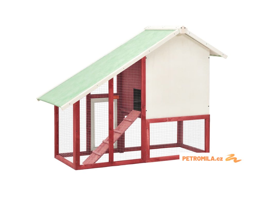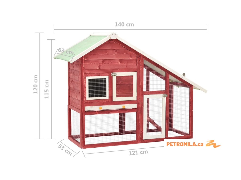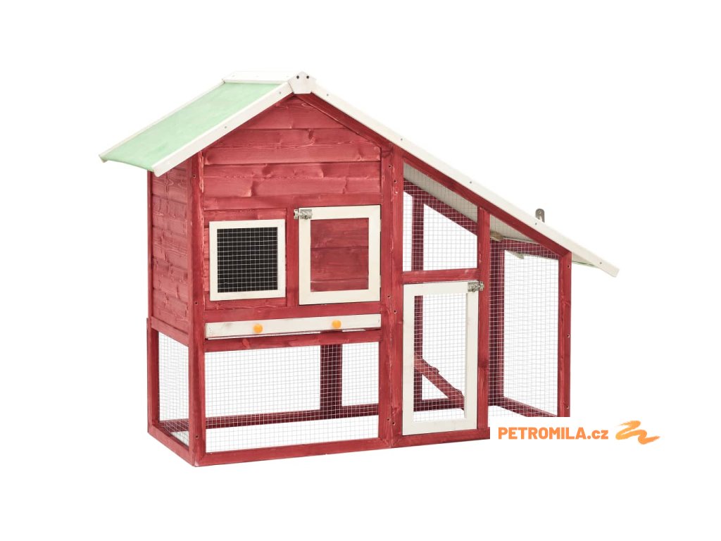 Králíkárna červená a bílá 140x63x120 cm masivní jedlové dřevo