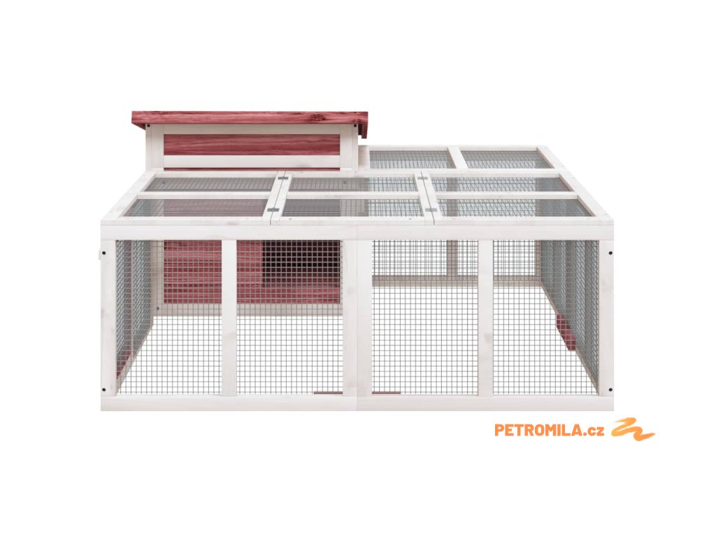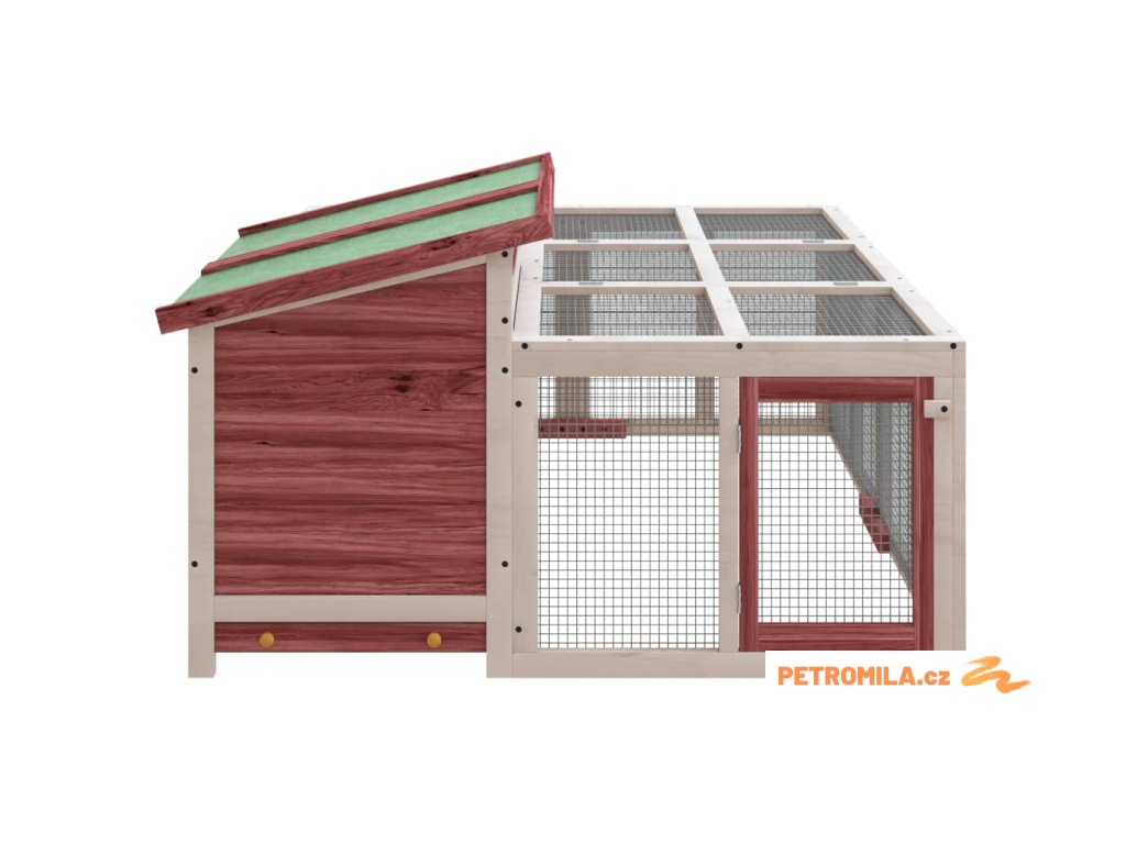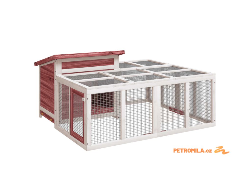 - Nepropustný zásobník: Výběh pro králíky je vybaven výsuvným nepropustným zásobníkem, který usnadňuje čištění.