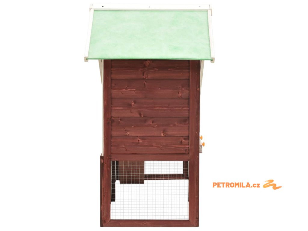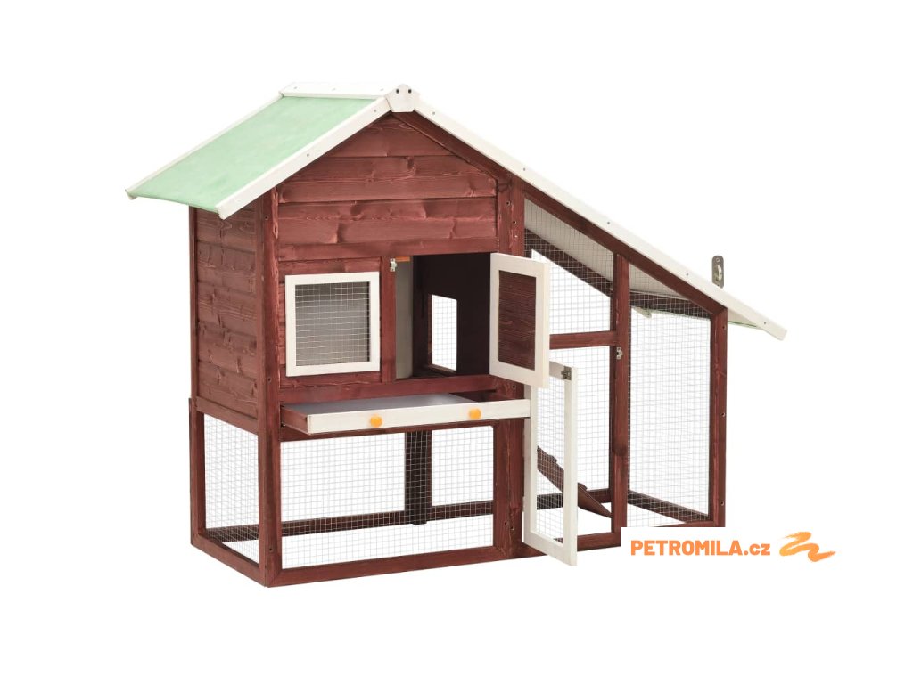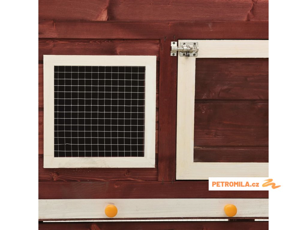Tato králíkárna vašim mazlíčkům poskytne dostatek prostoru k pohybu, zatímco husté pletivo pomáhá předcházet nepravostem chování a nepředvídaným událostem a zaručuje dostatek čerstvého vzduchu. Pletivová konstrukce má ovšem i další výhody: zvířata mají rozhled po okolí a vy je můžete pozorovat při jejich hrátkách. Do králíkárny je přístup 2 dvířky a má masivní rám, a proto je stabilní a má dlouhou životnost. Zešikmená zelená střecha je pokrytá voděodolným textilem a chrání vnitřek pelíšku před deštěm. Zásuvka vyložená plechem slouží ke snadnému čištění králíkárny. Vnitřní kóje nabízí perfektní prostor na spaní. Přízemí je spojené s horním patrem pohodlnou rampou a vysunovací podnos usnadňuje čištění.