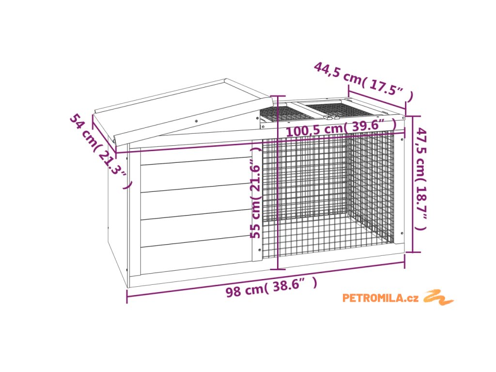 Králíkárna šedá 100,5 x 54 x 55 cm masivní borové dřevo