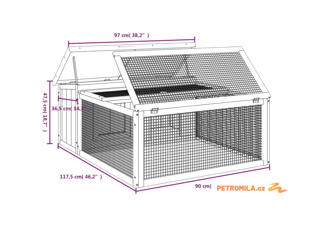 Králíkárna šedá 117,5 x 97 x 47,5 cm masivní borové dřevo