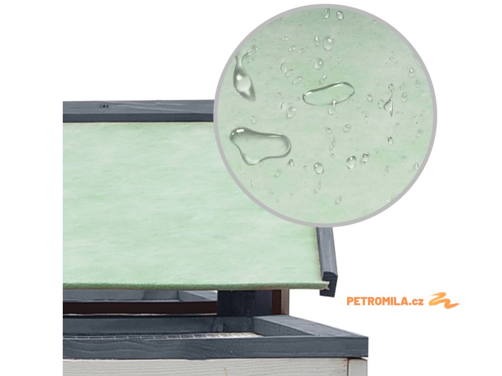- Střecha potažená voděodolnou tkaninou (100% polyester)