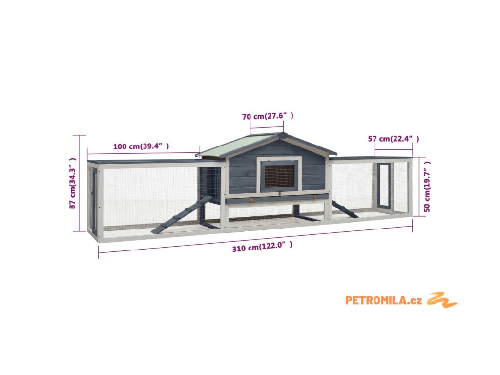 Králíkárna šedá 310x70x87 cm masivní borové a jedlové dřevo