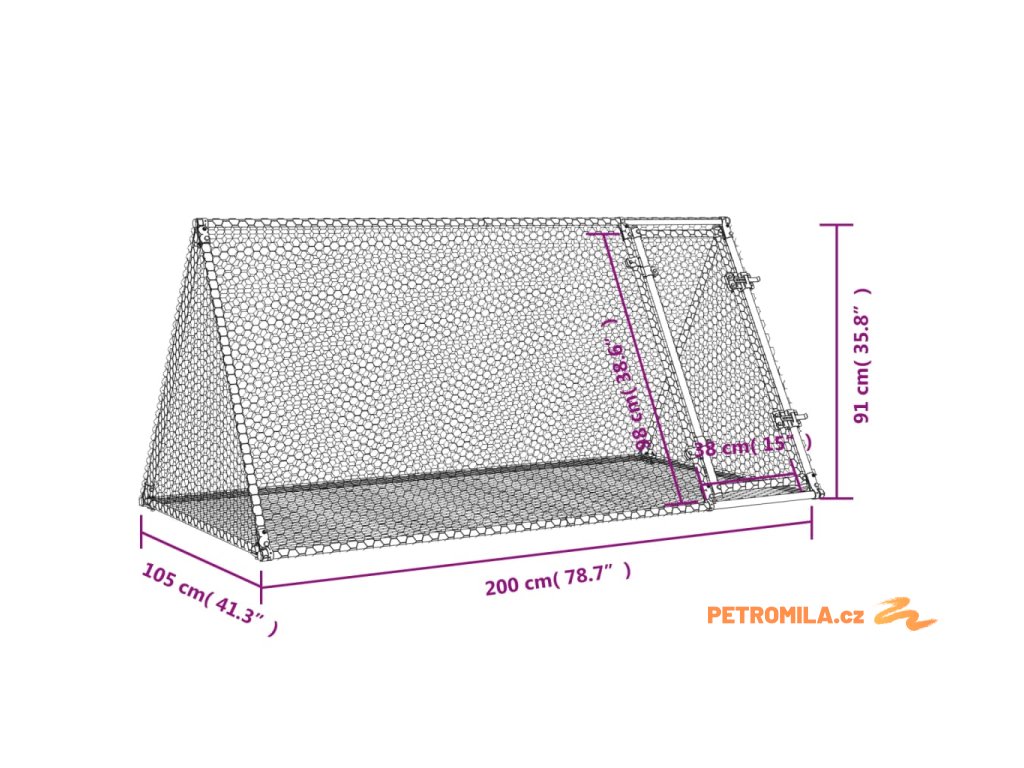 Králíkárna stříbrná 200 x 105 x 91 cm pozinkovaná ocel