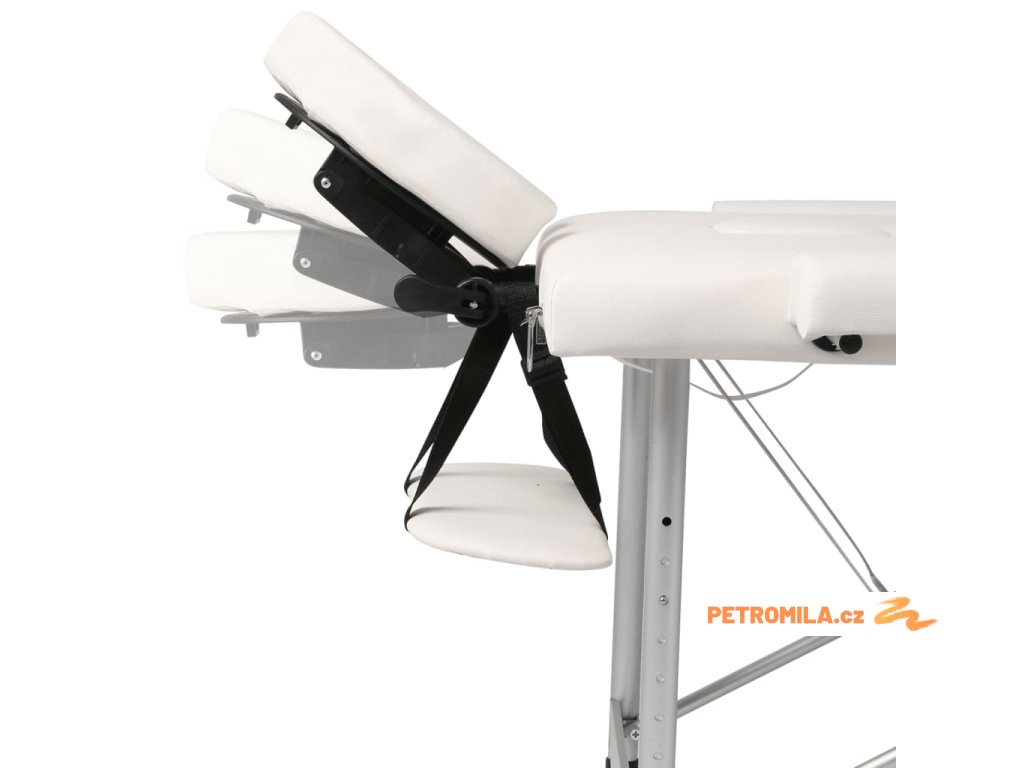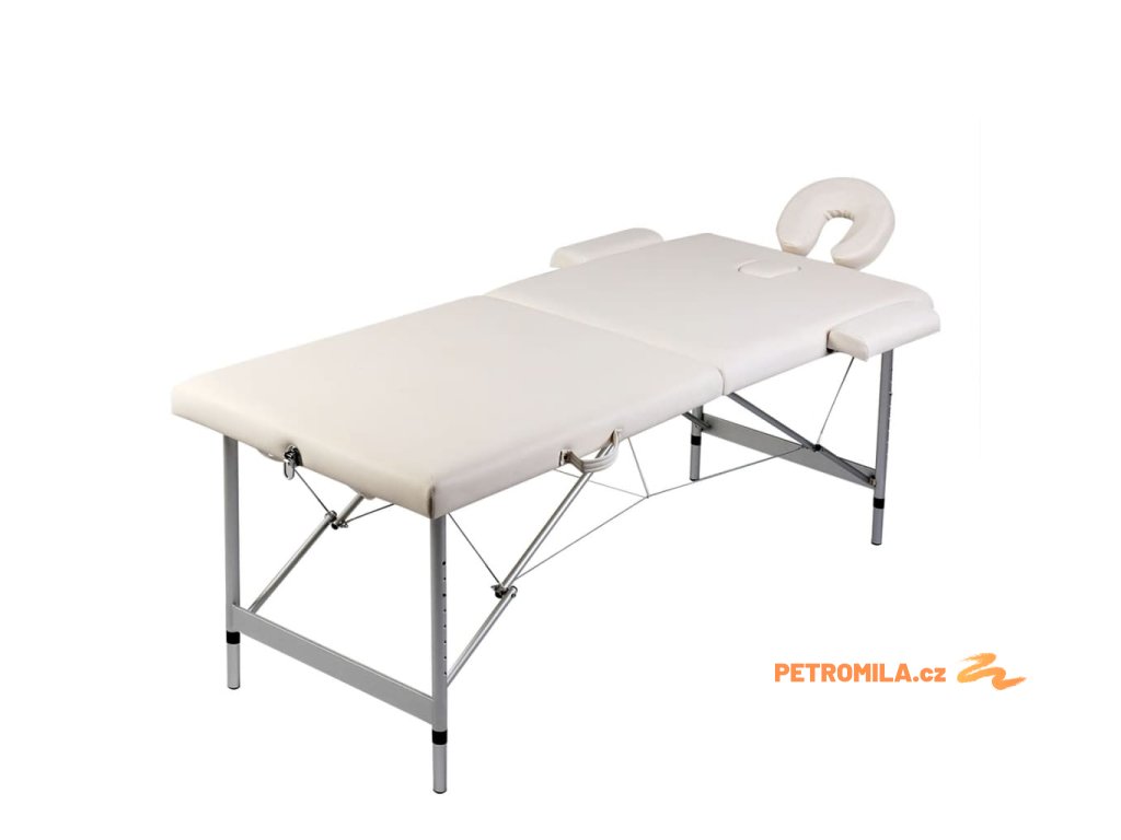 Krémově bílý skládací masážní stůl 2 zóny s hliníkovým rámem