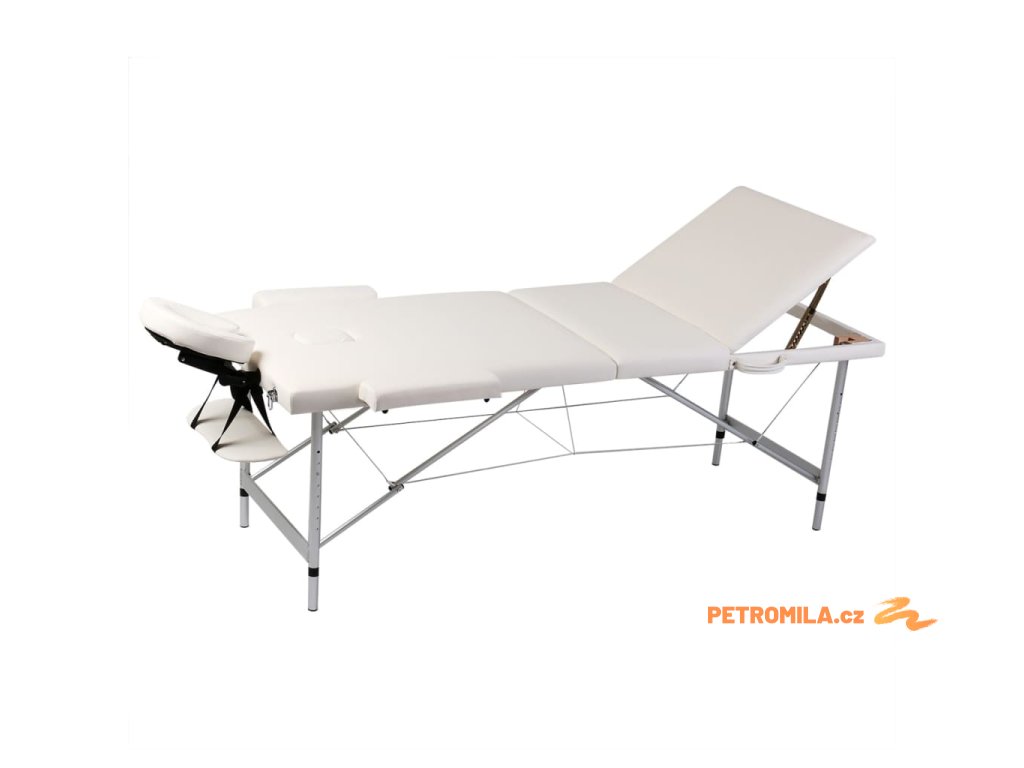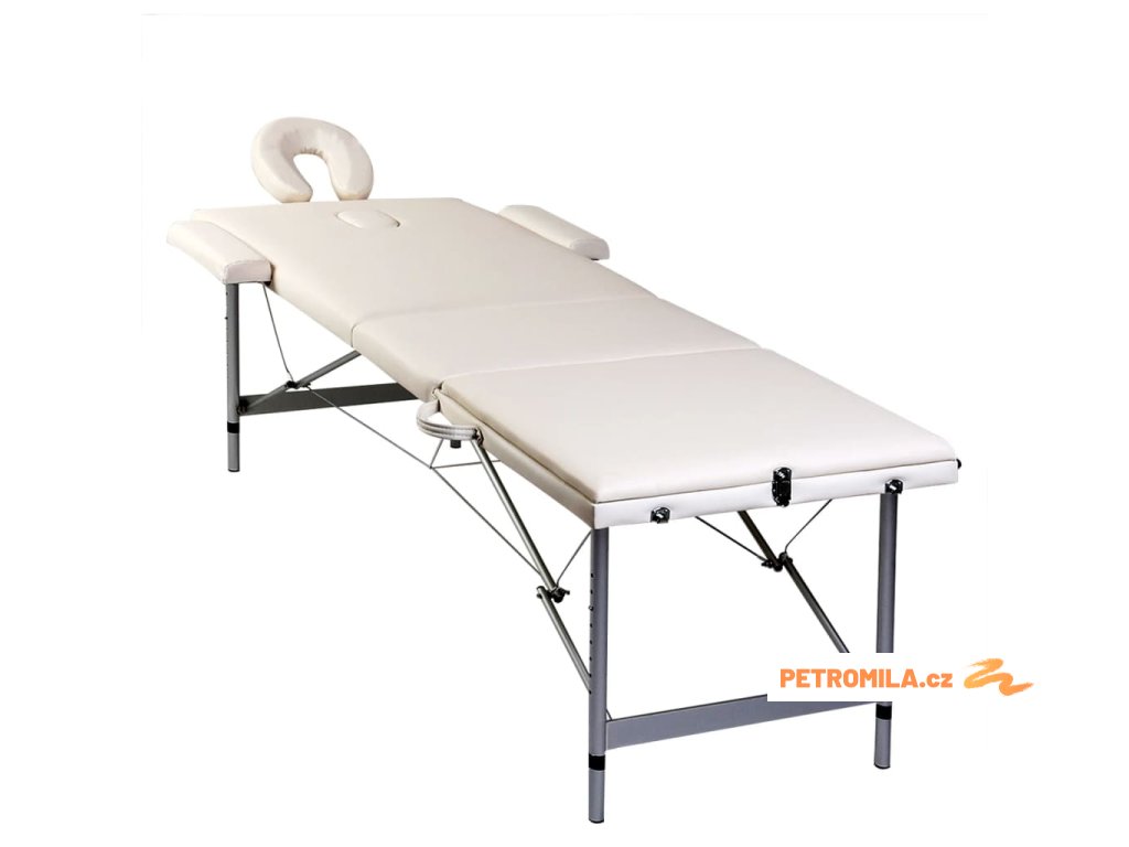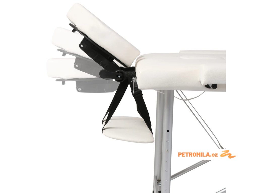 Krémově bílý skládací masážní stůl se 3 zónami a hliníkovým rámem