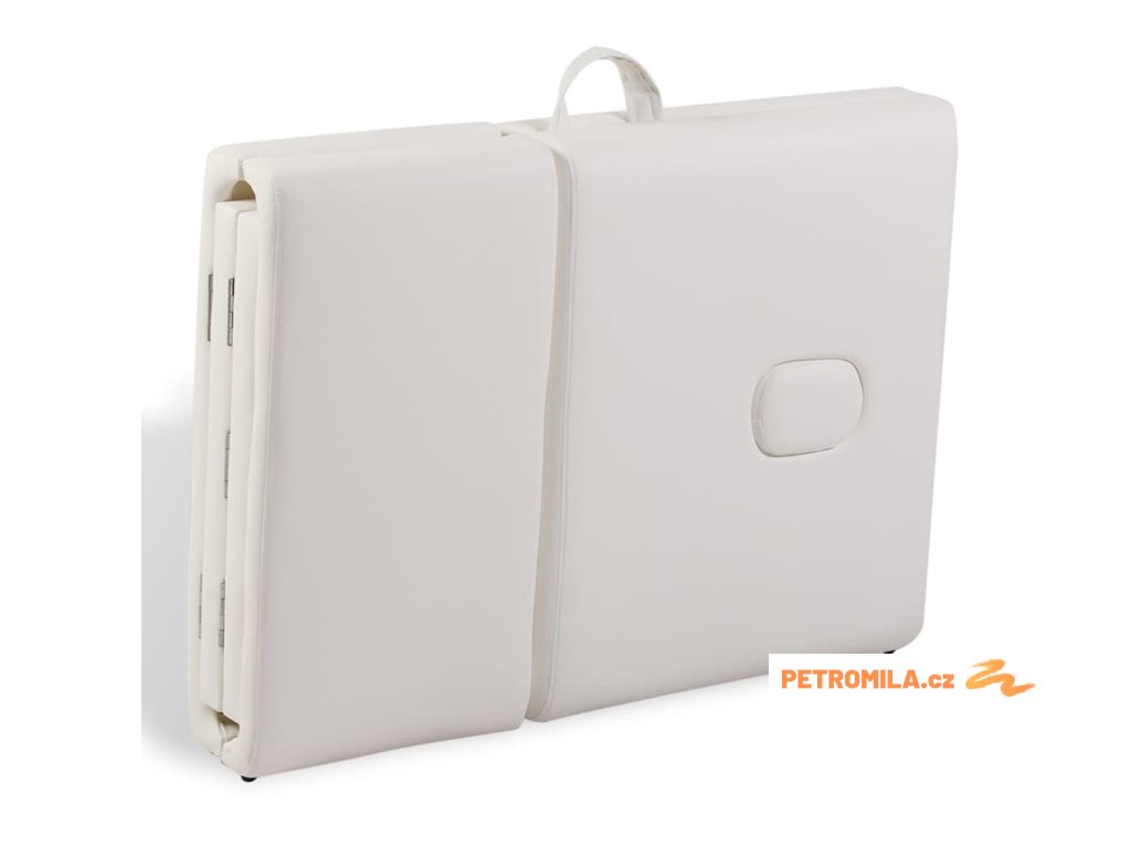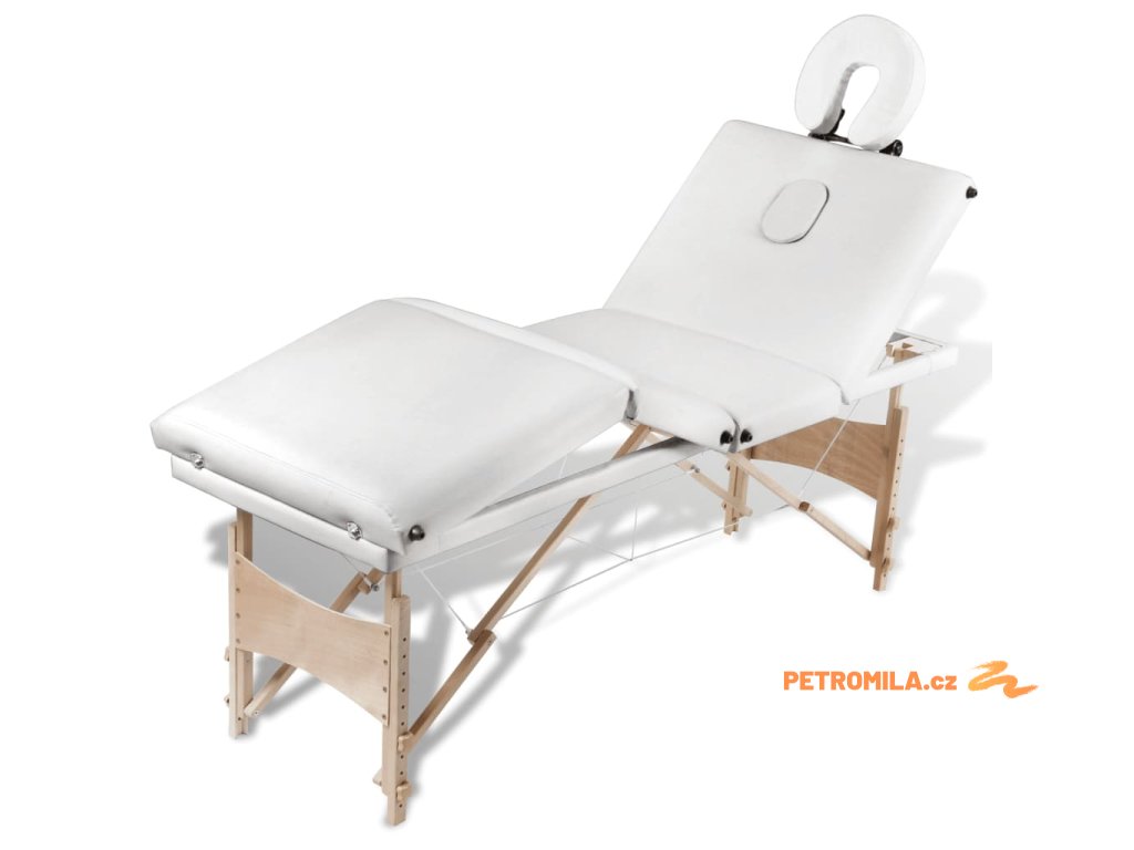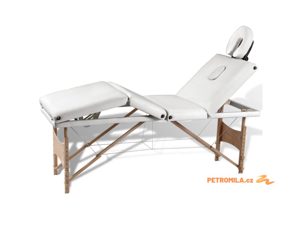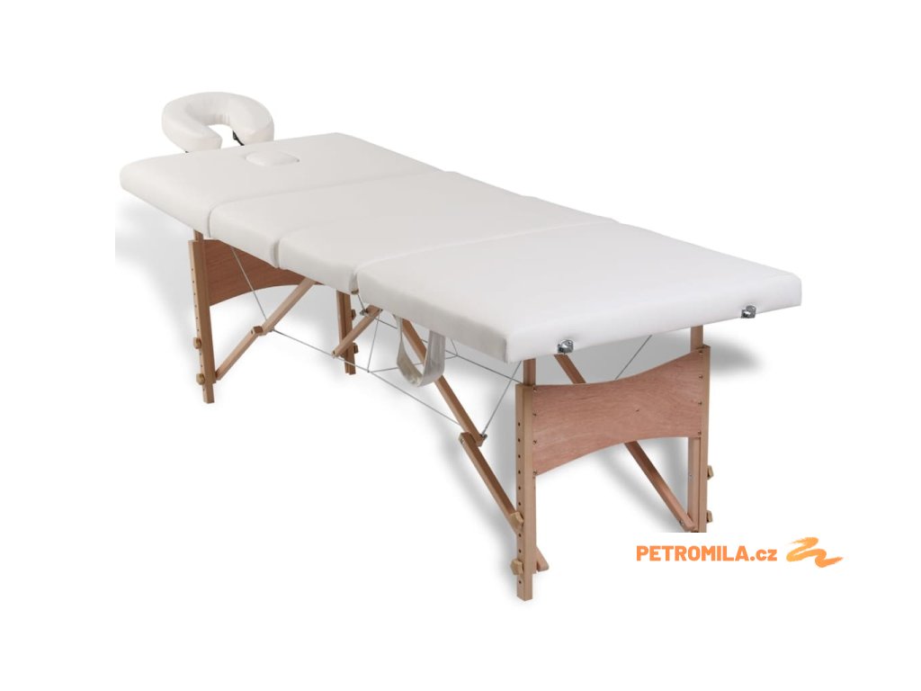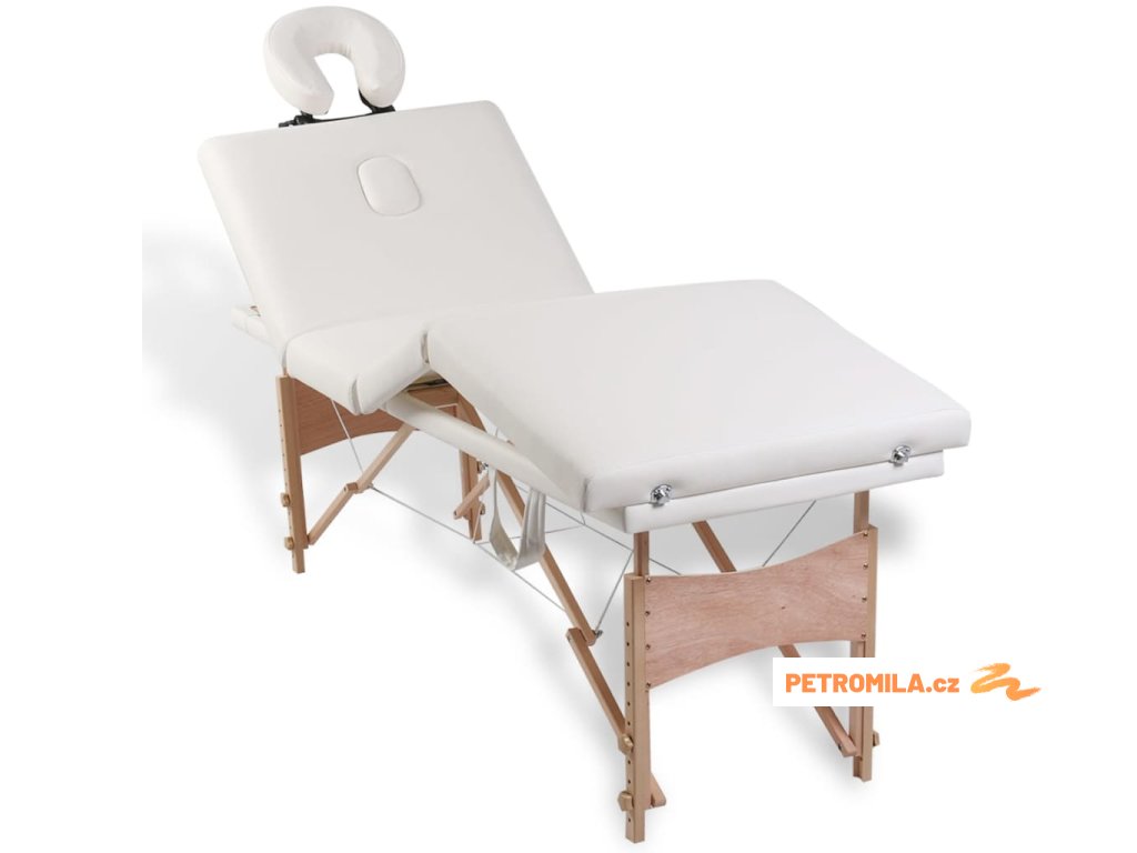 Krémově bílý skládací masážní stůl se 4 zónami a dřevěným rámem