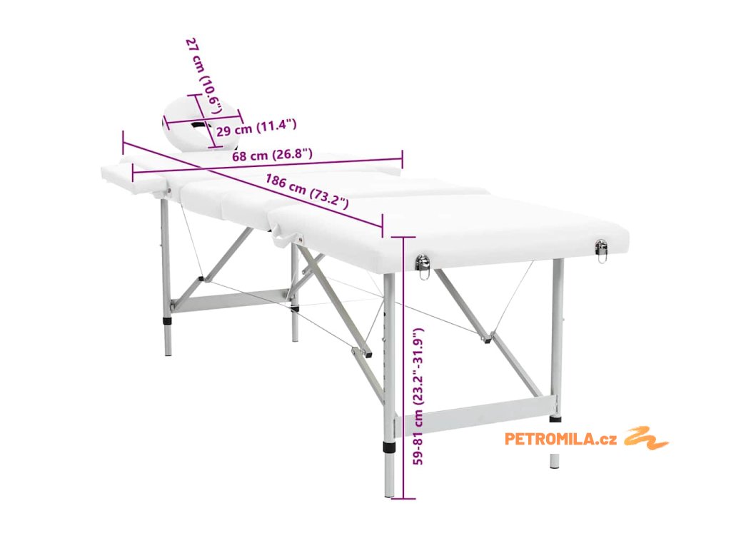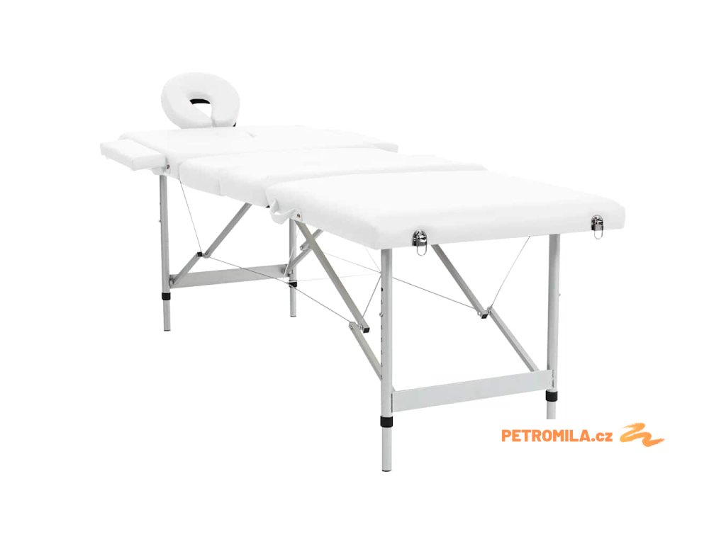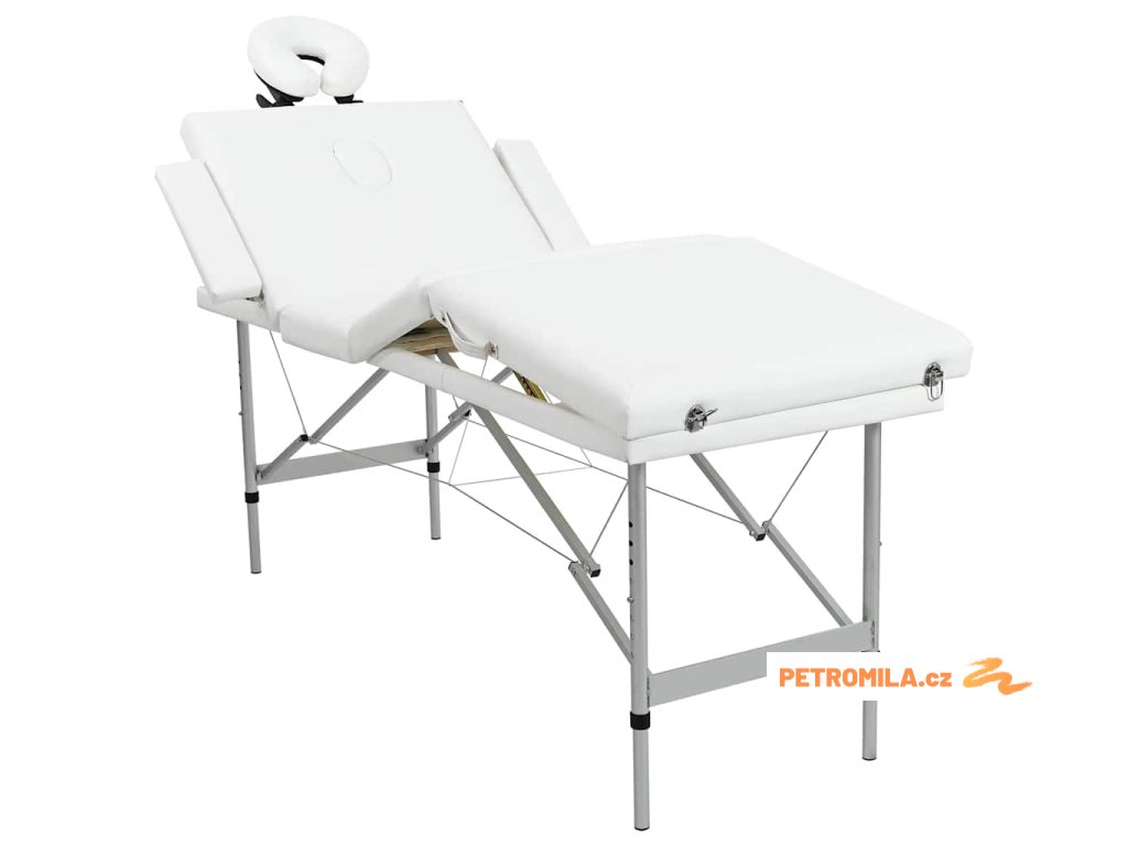 Krémově bílý skládací masážní stůl se 3 zónami a hliníkovým rámem