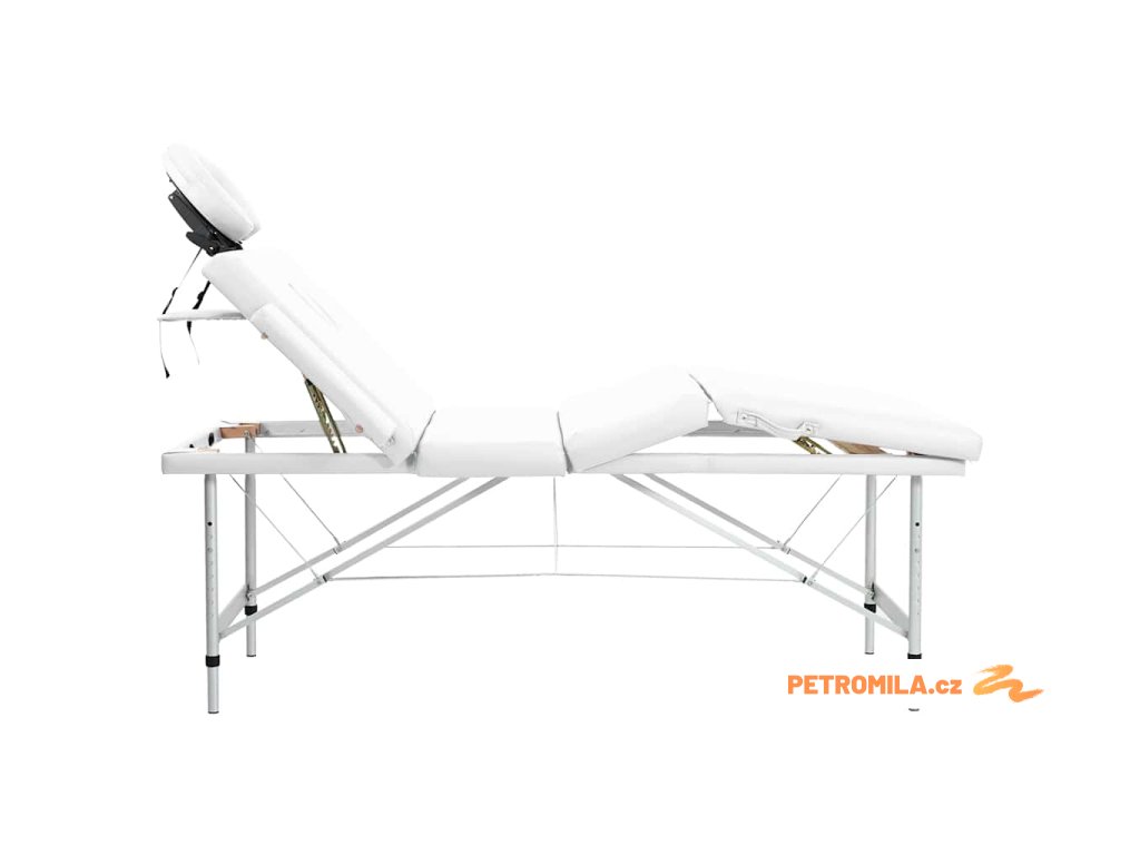 Krémově bílý skládací masážní stůl se 4 zónami a hliníkový rám