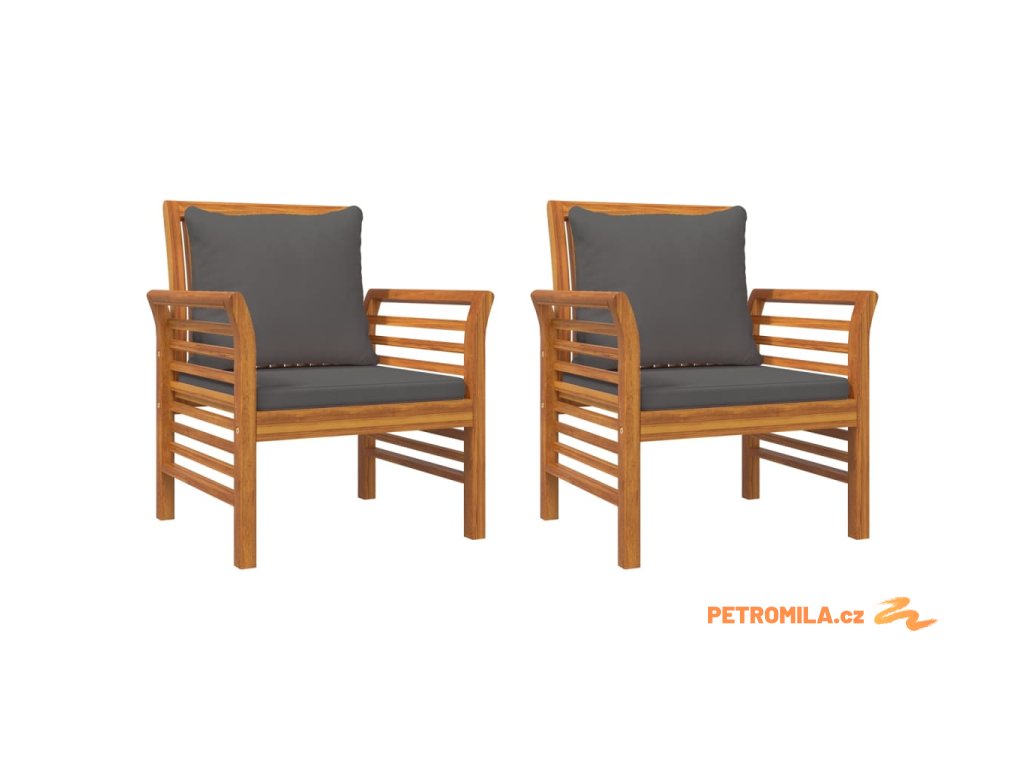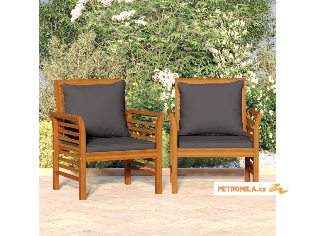 Křesla s tmavě šedými poduškami 2 ks masivní akáciové dřevo