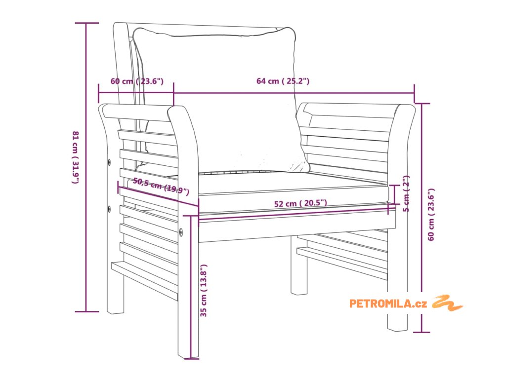 - Rozměry podušky na sedák: 52 x 50 x 5 cm (D x Š x T)