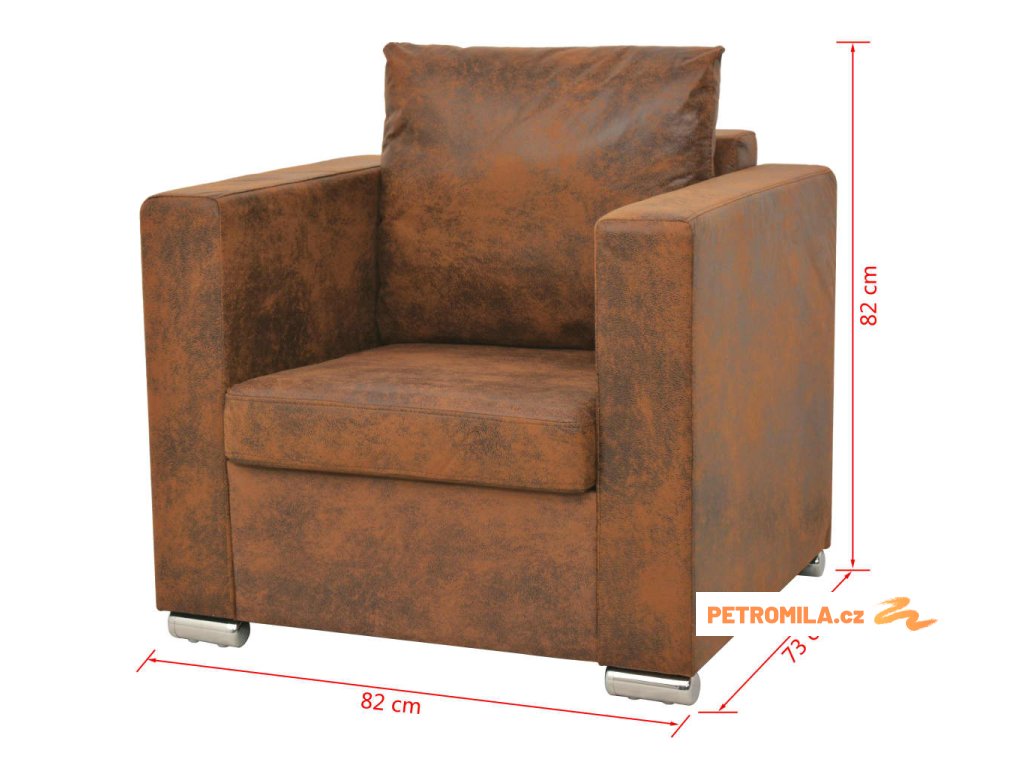 Křeslo hnědé 82 x 73 x 82 cm umělá semišová kůže