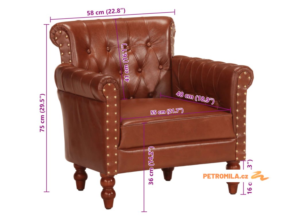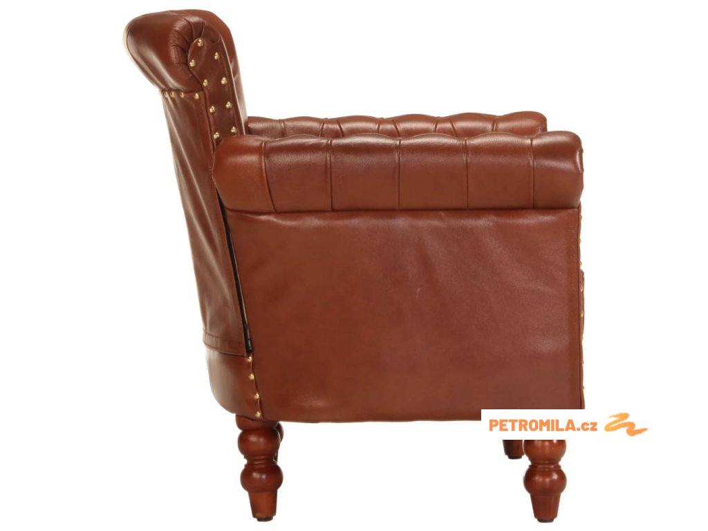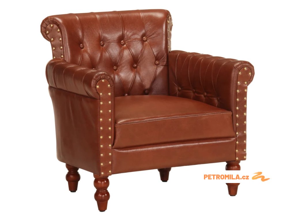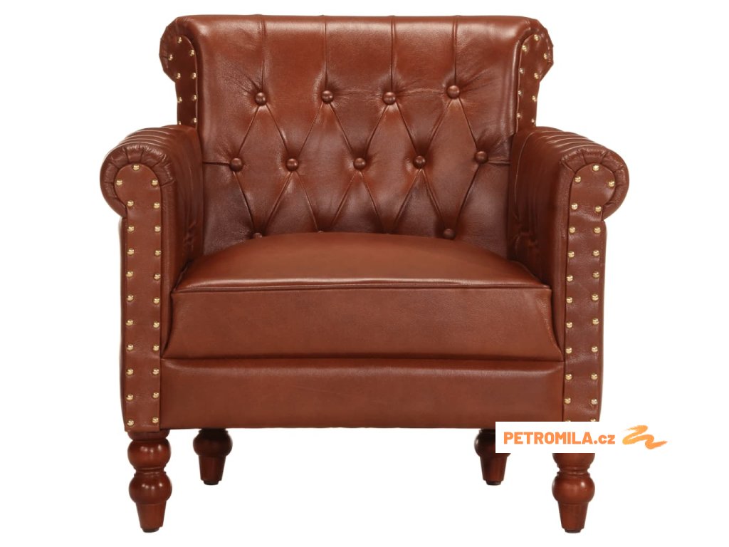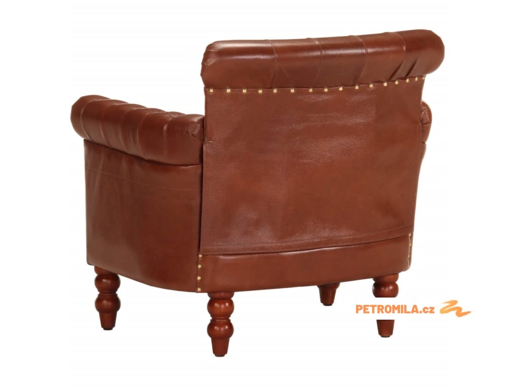 Tato židle je čalouněná odolnou pravou kozí kůží, která vám poskytuje vynikající zážitek ze sezení. Pohovka stojí na nohou z masivního mangovníkového dřeva, takže je stabilní a robustní.