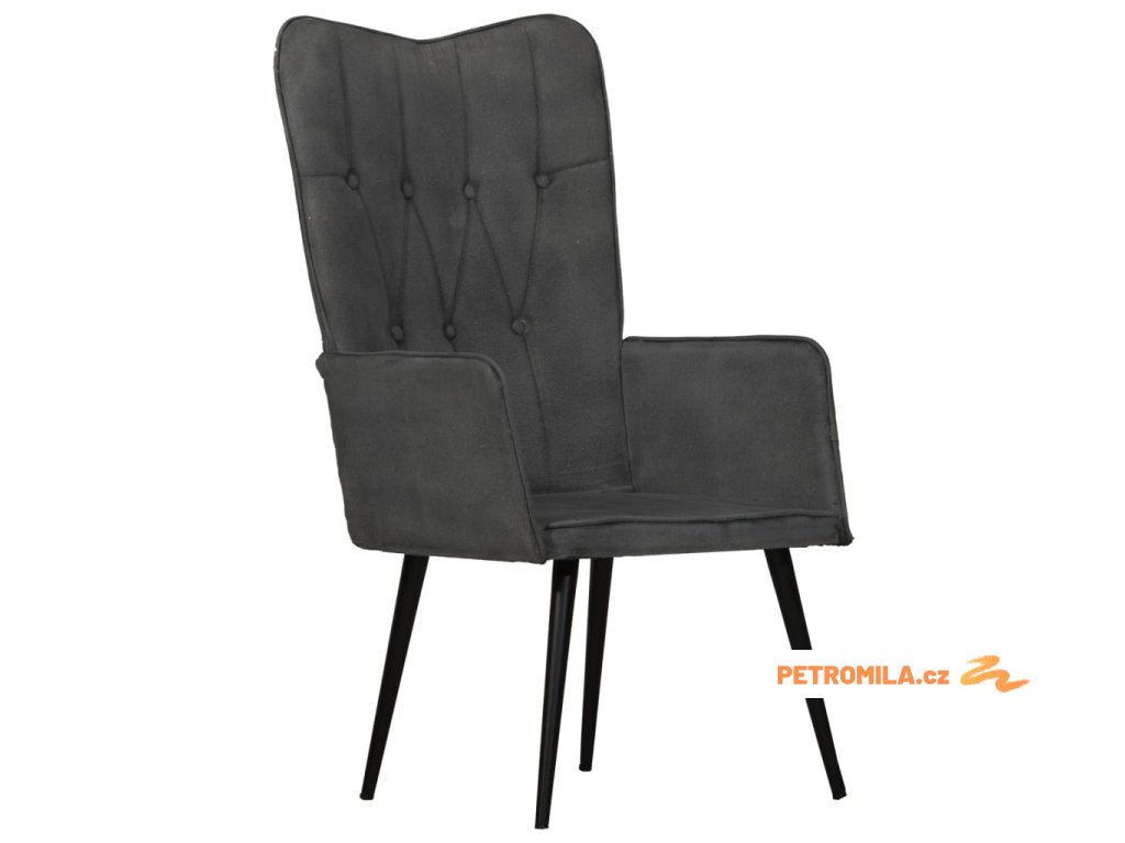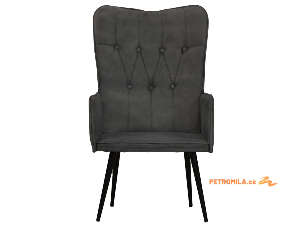 Relaxační křeslo se stoličkou tmavě šedé samet