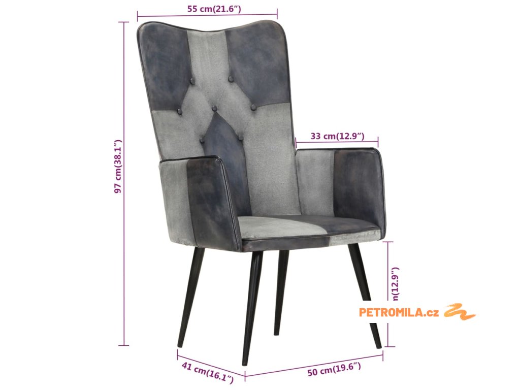 - Materiál: pravá kůže, plátno (100% bavlna), práškové lakované železo