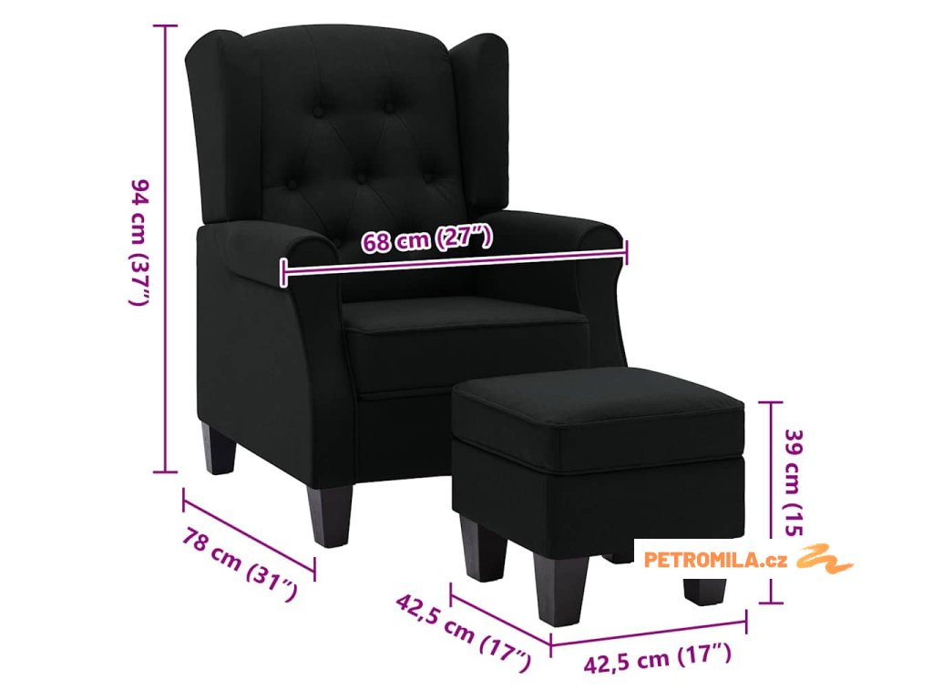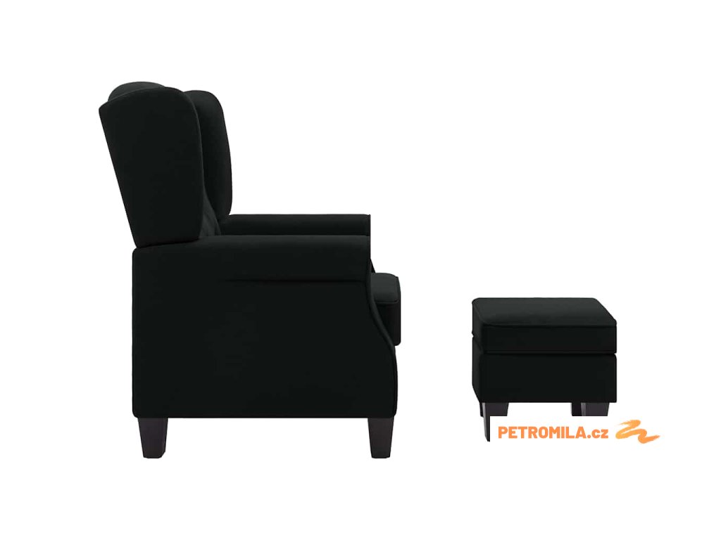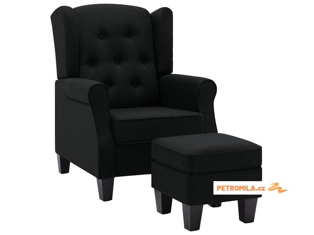 Křeslo s podnožkou černé textil