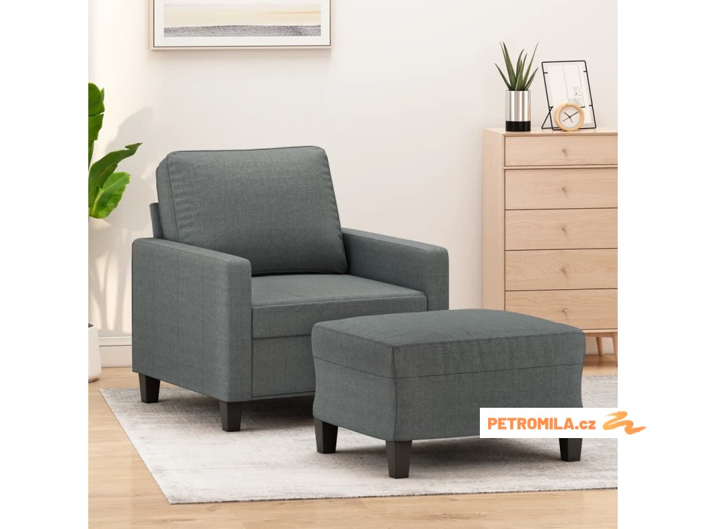 Křeslo s podnožkou tmavě šedé 60 cm textil