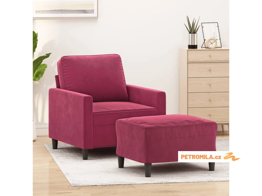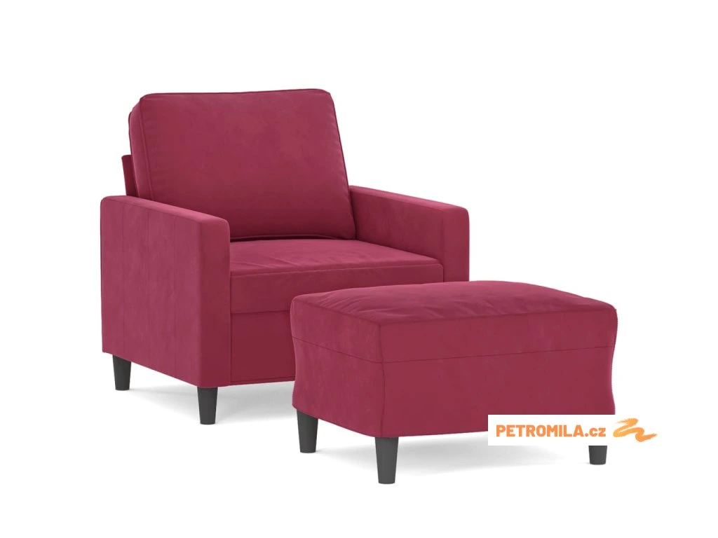 Křeslo s podnožkou vínové 60 cm samet