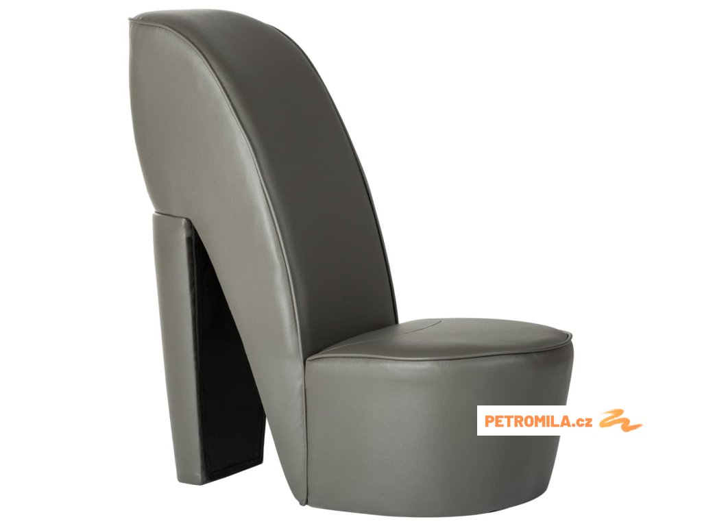 Křeslo s vysokým podpatkem šedé umělá kůže