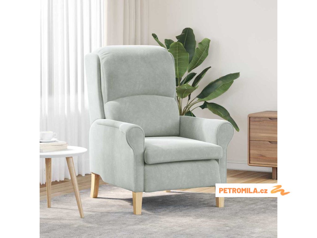 Sametové čalounění: Měkký sametový povrch dodá dotek elegance, s pohodlným a příjemným sezením. Silná konstrukce: Křeslo je vyrobeno z inženýrského dřeva, což zajišťuje odolnost a stabilitu. Tento robustní design je ideální pro moderní obývací prostory. Ergonomický design: Zakulacené opěrky a vysoké opěradlo nabízejí pohodlí a podporu pro dlouhé chvíle odpočinku. Masivní kaučukovníkové nohy: Stabilní nohy dodávají přírodní šmrnc a zvyšují celkovou stabilitu křesla. Snadná údržba: Křeslo se snadno udržuje otíráním vlhkým hadříkem a pravidelným vysáváním.- Barva: Světle šedá