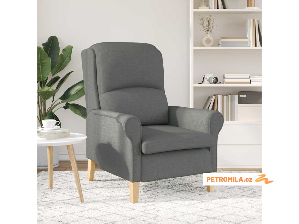 Relaxační křeslo se stoličkou tmavě šedé textil