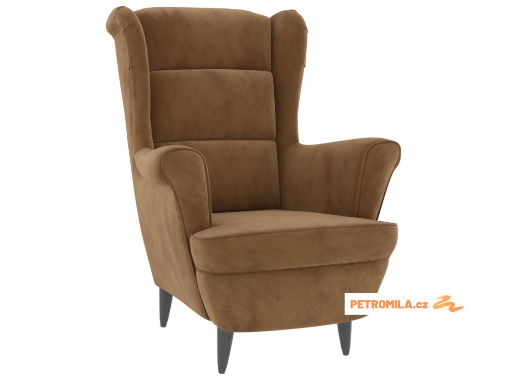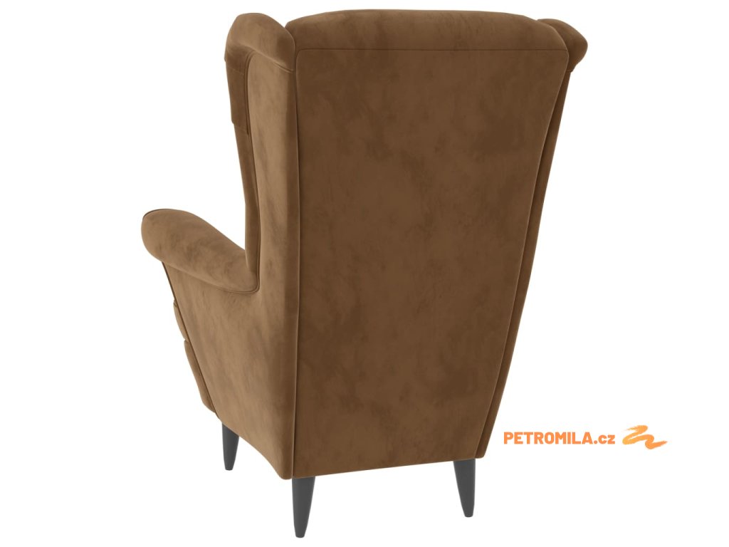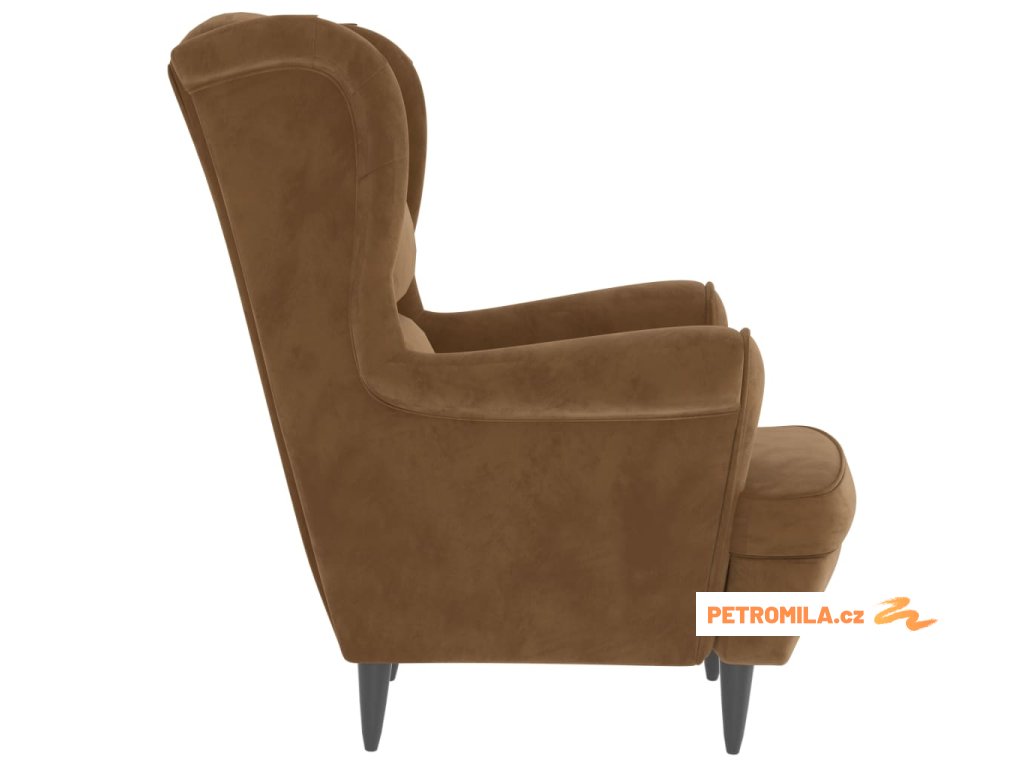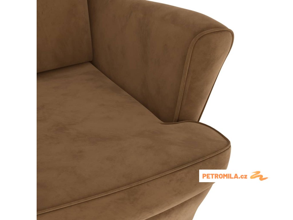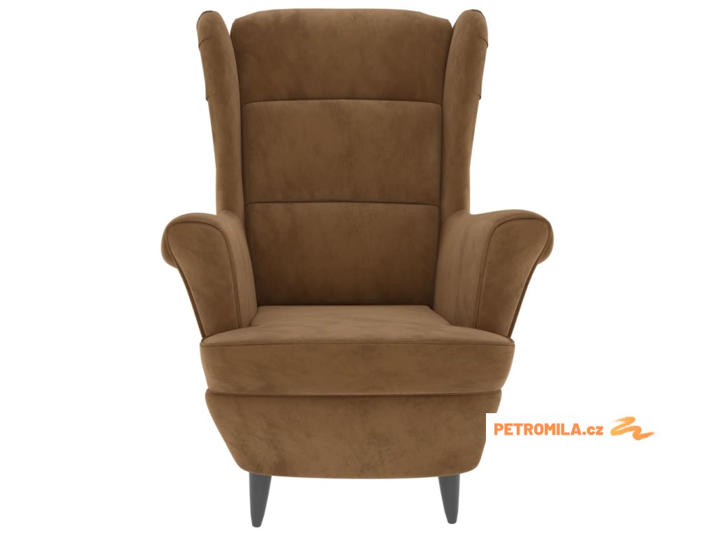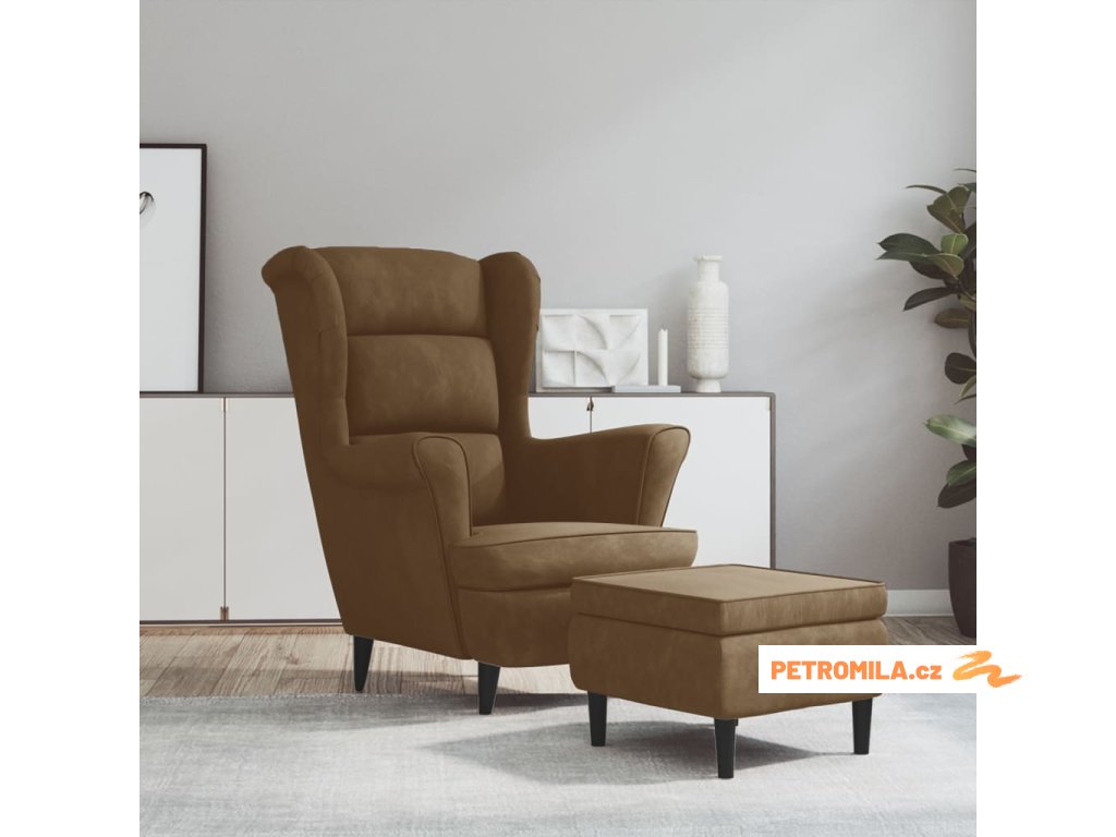 Křeslo ušák se stoličkou hnědé samet