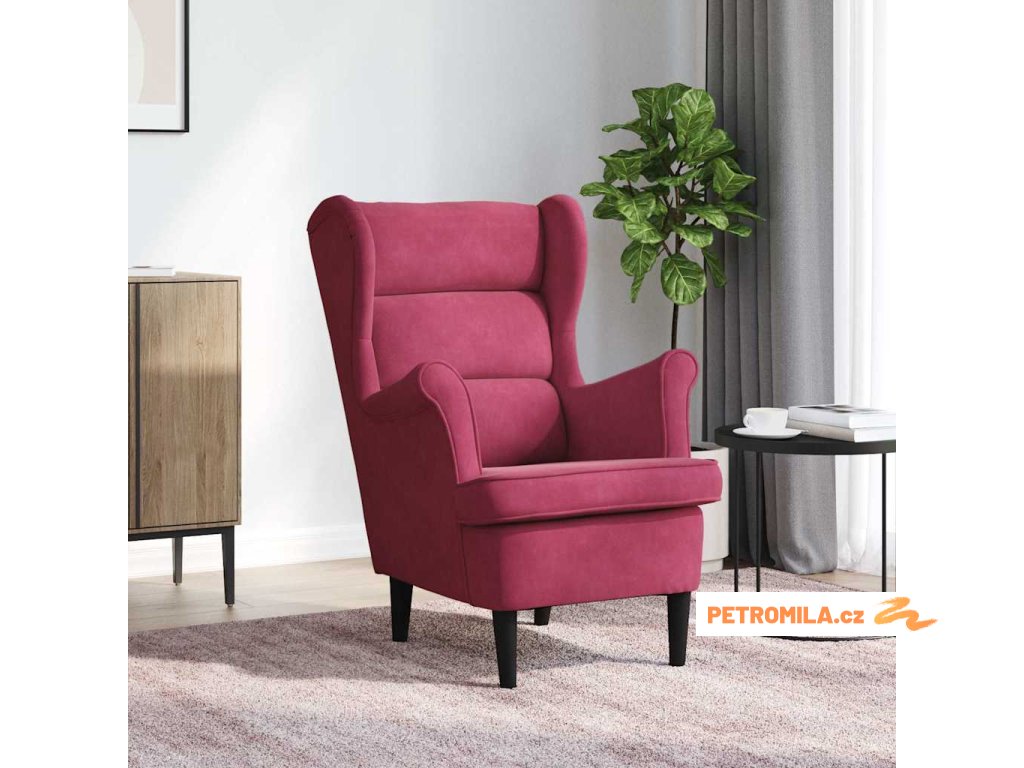 Křeslo je čalouněné sametem, je tedy velmi hebké na dotek a má dlouhou životnost. Stabilitu zajišťuje rám z překližky. Polstrované opěradlo a sedák vám zajistí pohodlné posezení.
