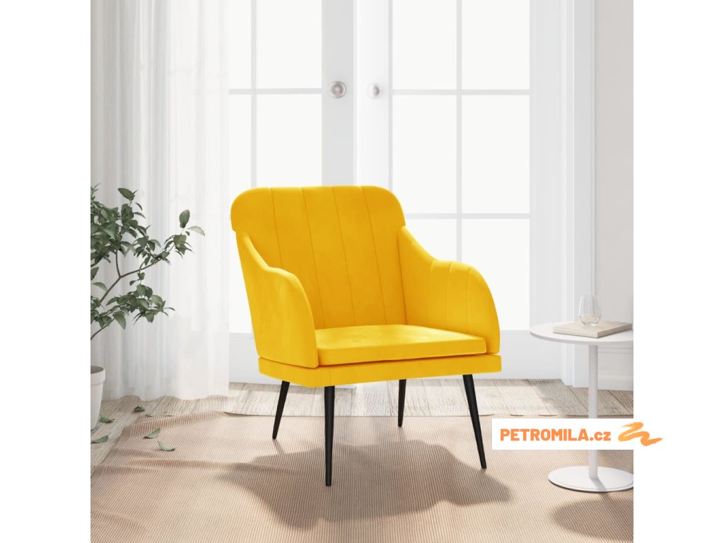 Křeslo žluté 63 x 76 x 80 cm samet