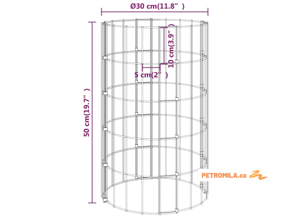 - Rozměry každého gabionu: 30 x 50 cm (průměr x V)