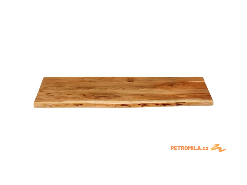Koupelnový pult je vyrobený z masivní akácie, což je tropické tvrdé dřevo, které je husté a odolné a má dlouhou životnost. Masivní akáciové dřevo bylo vyleštěné, natřené a nalakované, takže je dobře zapečetěné, a tudíž chráněné před vlhkostí. Deska je zhotovená z kmene stromu a kopíruje jeho přírodní hrany, takže do vašeho bydlení vnese krástu přírodního dřeva.