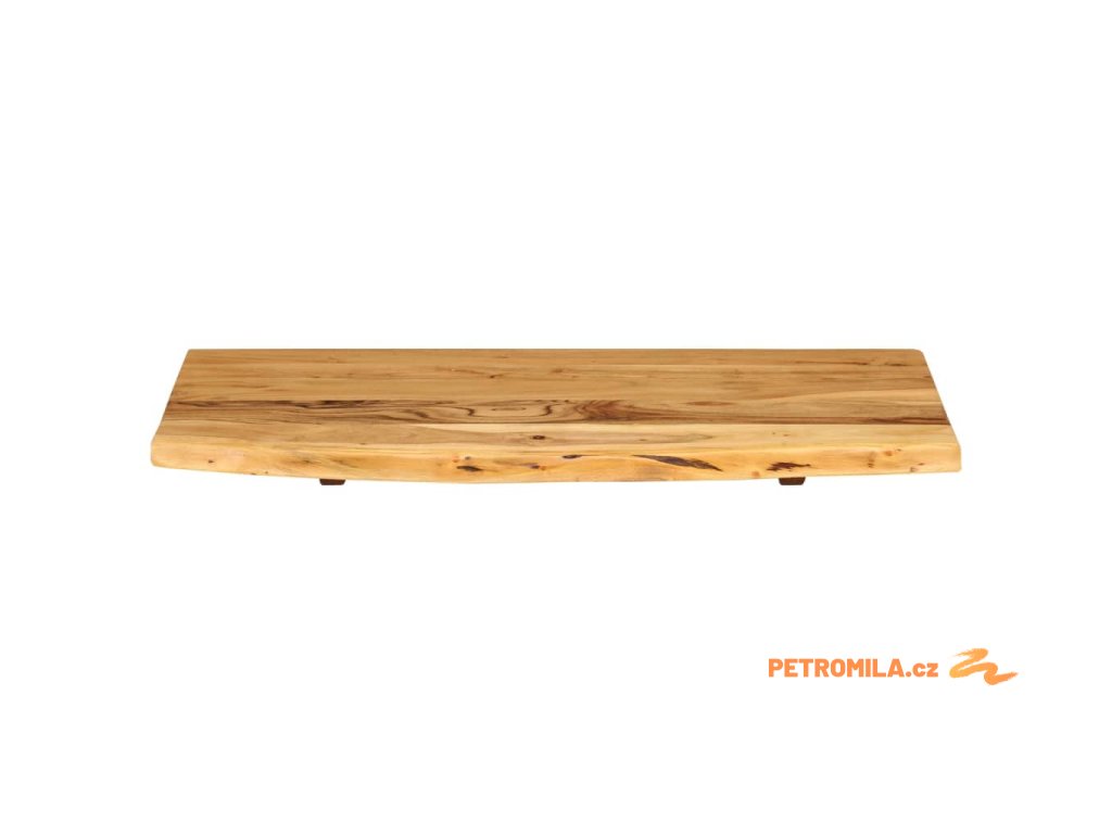 Koupelnový pult je vyrobený z masivní akácie, což je tropické tvrdé dřevo, které je husté a odolné a má dlouhou životnost. Masivní akáciové dřevo bylo vyleštěné, natřené a nalakované, takže je dobře zapečetěné, a tudíž chráněné před vlhkostí. Deska je zhotovená z kmene stromu a kopíruje jeho přírodní hrany, takže do vašeho bydlení vnese krástu přírodního dřeva.