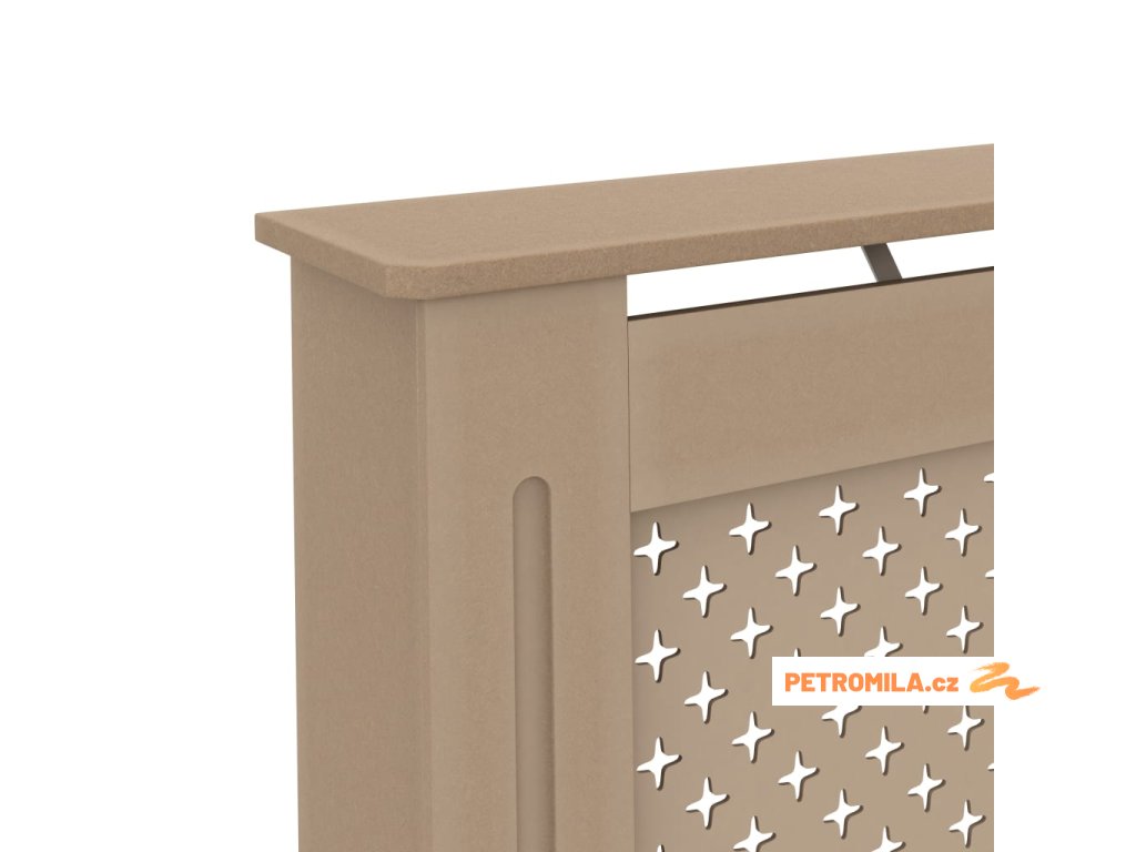 Tento kryt na radiátor představuje jak stylový, tak praktický doplněk do vašeho obývacího pokoje. Je navržen tak, aby dodal vašemu topení dekorativní charakter a zároveň vám poskytl více prostoru pro vaše zarámované fotografie, knihy, ozdoby apod.