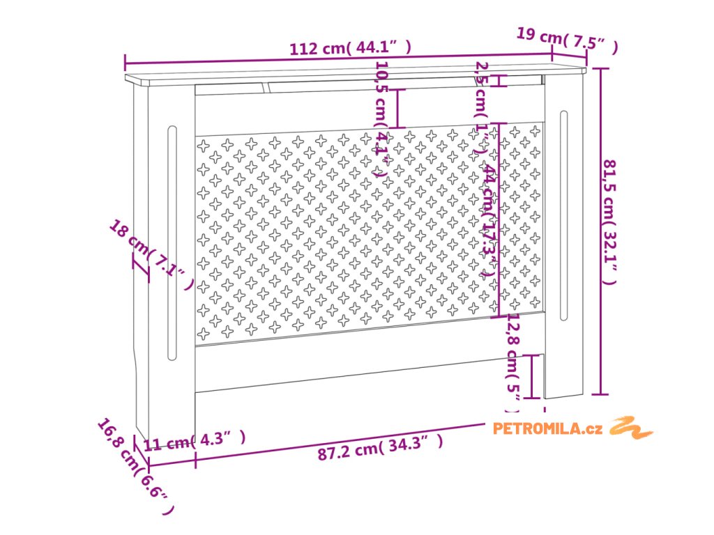 Kryt na radiátor 112 x 19 x 81,5 cm MDF