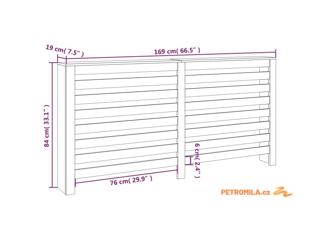 Kryt na radiátor 169 x 19 x 84 cm masivní borové dřevo