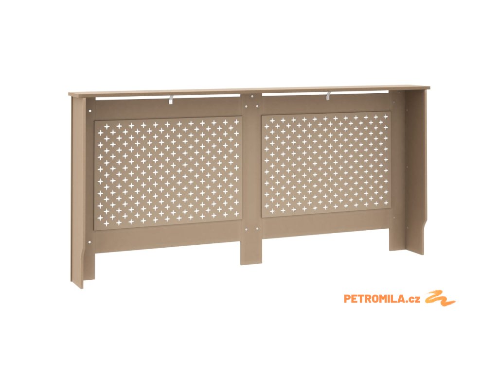 Tento kryt na radiátor představuje jak stylový, tak praktický doplněk do vašeho obývacího pokoje. Je navržen tak, aby dodal vašemu topení dekorativní charakter a zároveň vám poskytl více prostoru pro vaše zarámované fotografie, knihy, ozdoby apod.