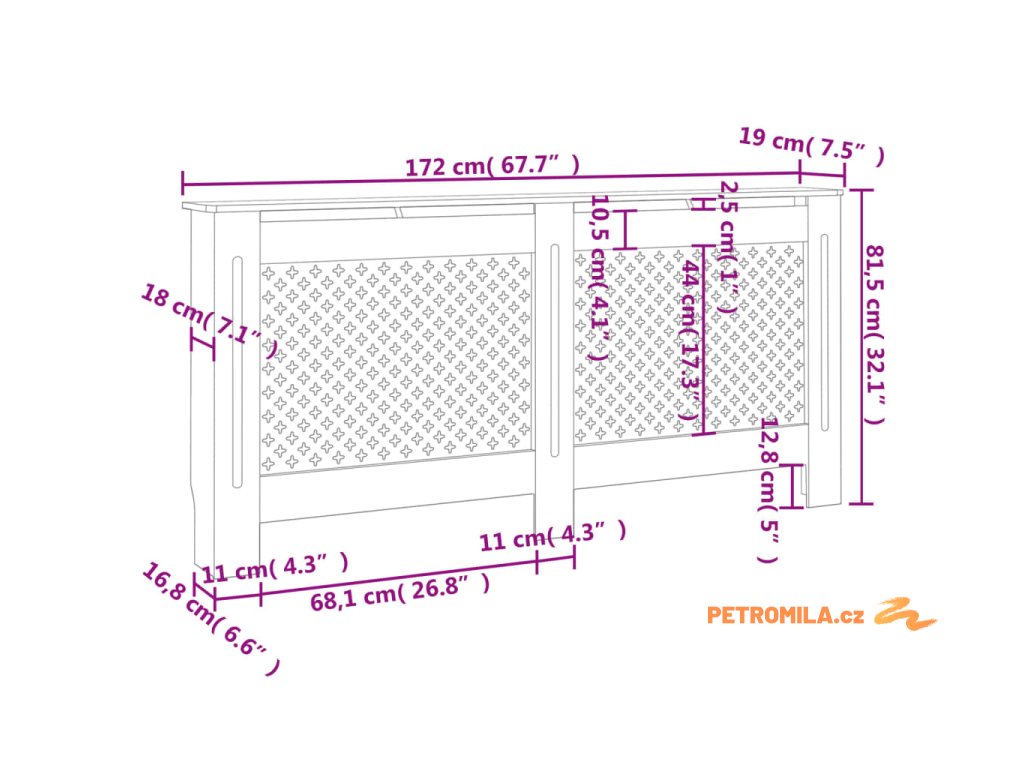 Kryt na radiátor 172 x 19 x 81,5 cm MDF