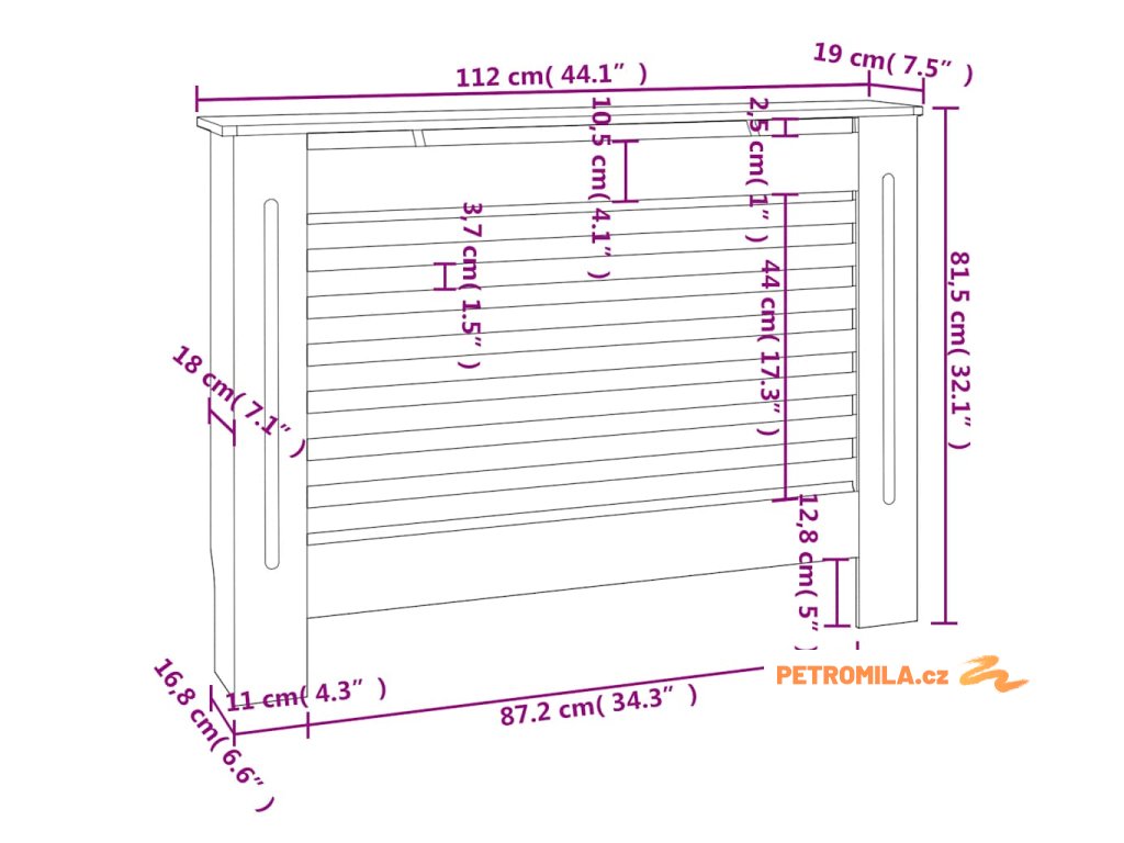 Kryt na radiátor antracitový 112 x 19 x 81,5 cm MDF