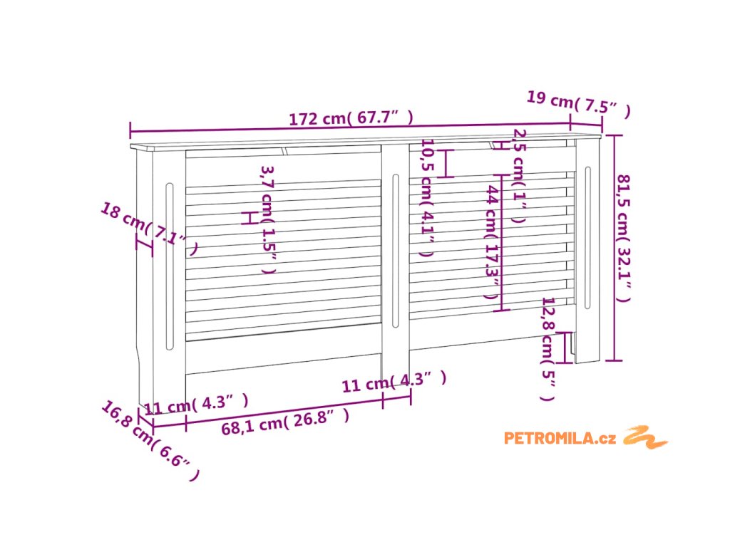 Kryt na radiátor bílý 172x19x81,5 cm MDF