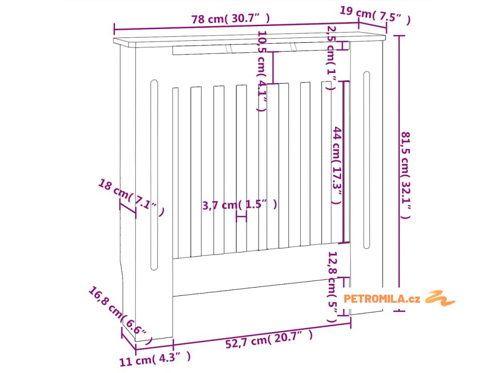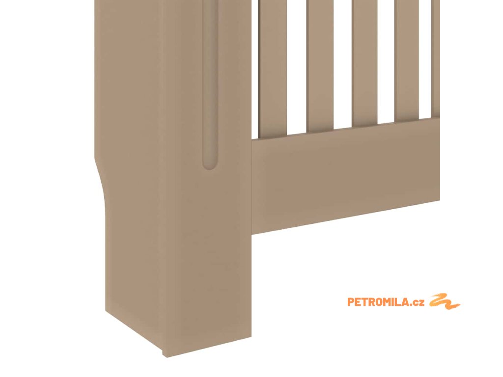 Kryt na radiátor je vyrobený z MDF, vyznačuje se tedy odolností a dlouhou životností. Upoutá pozornost moderním lamelovým designem, takže je vhodný pro jakýkoli dekor. Police vám poskytne dostatek místa pro umístění všech vašich knih, rámečků s fotografiemi, dekorací atd.Properties: