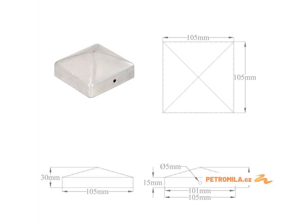 Tato plotová čepička je vhodná pro čtvercové sloupky s hranou 101 mm.