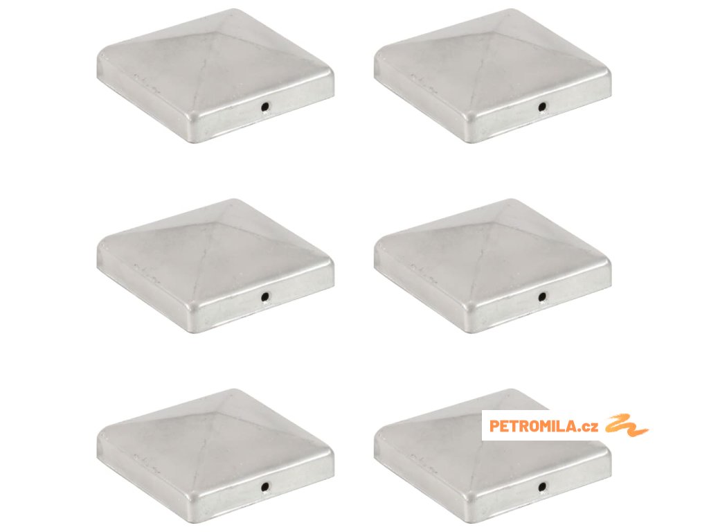 Krytky na plotové sloupky stříška 6ks pozinkovaný kov 101x101mm
