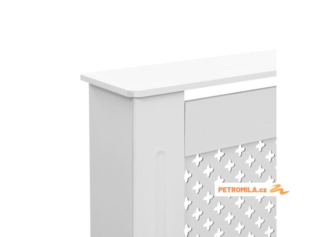 Tento kryt na radiátor představuje jak stylový, tak praktický doplněk do vašeho obývacího pokoje. Je navržen tak, aby dodal vašemu topení dekorativní charakter a zároveň vám poskytl více prostoru pro vaše zarámované fotografie, knihy, ozdoby apod.