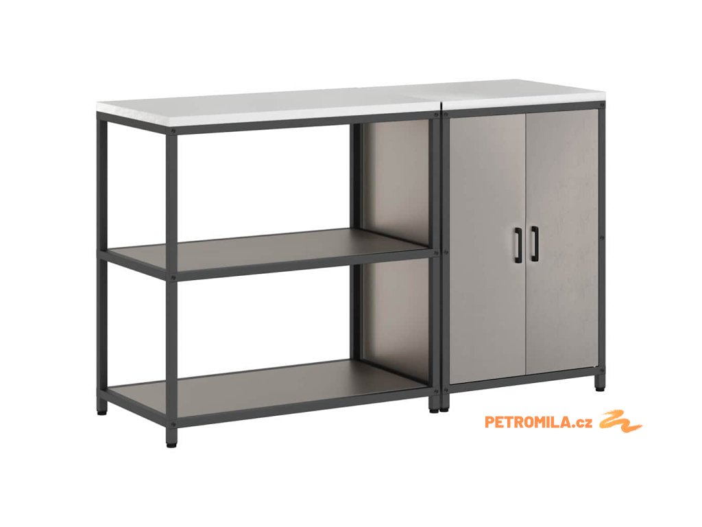 - Kovové police Uvnitř má této jednotky kovové police, které skvěle unesou těžší kuchyňské nebo nářaďové věci. Tyto police pomohou maximálně využít váš úložný prostor a udrží věci na bezpečném místě.